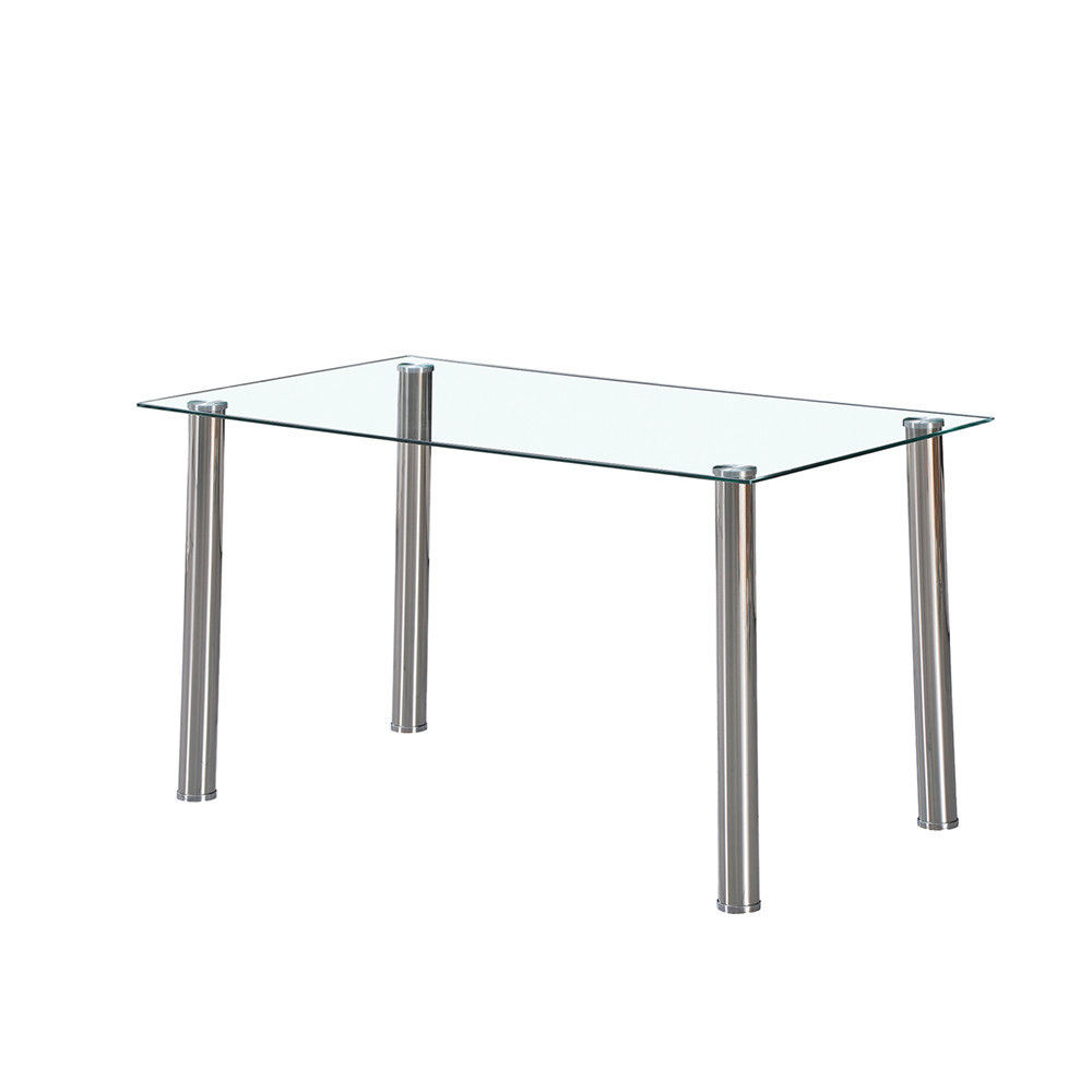 Adu un aer modern în zona de luat masa cu masa de dining pătrată Leziter Berna 140 cm, cu blat din sticlă transparentă și picioare metalice cu finisaj lucios. Se potrivește ușor în bucătărie sau living, oferind un aspect aerisit și o suprafață simplu de curățat.