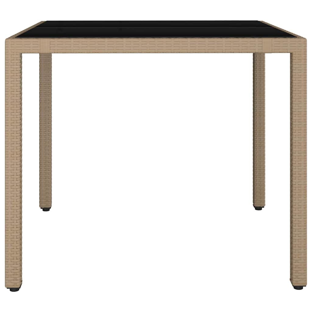 Masă de grădină cu blat sticlă, bej, poliratan/sticlă securiz. GartenMobel Dekor