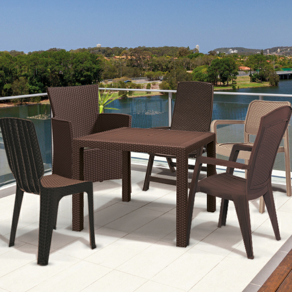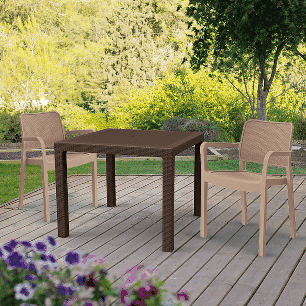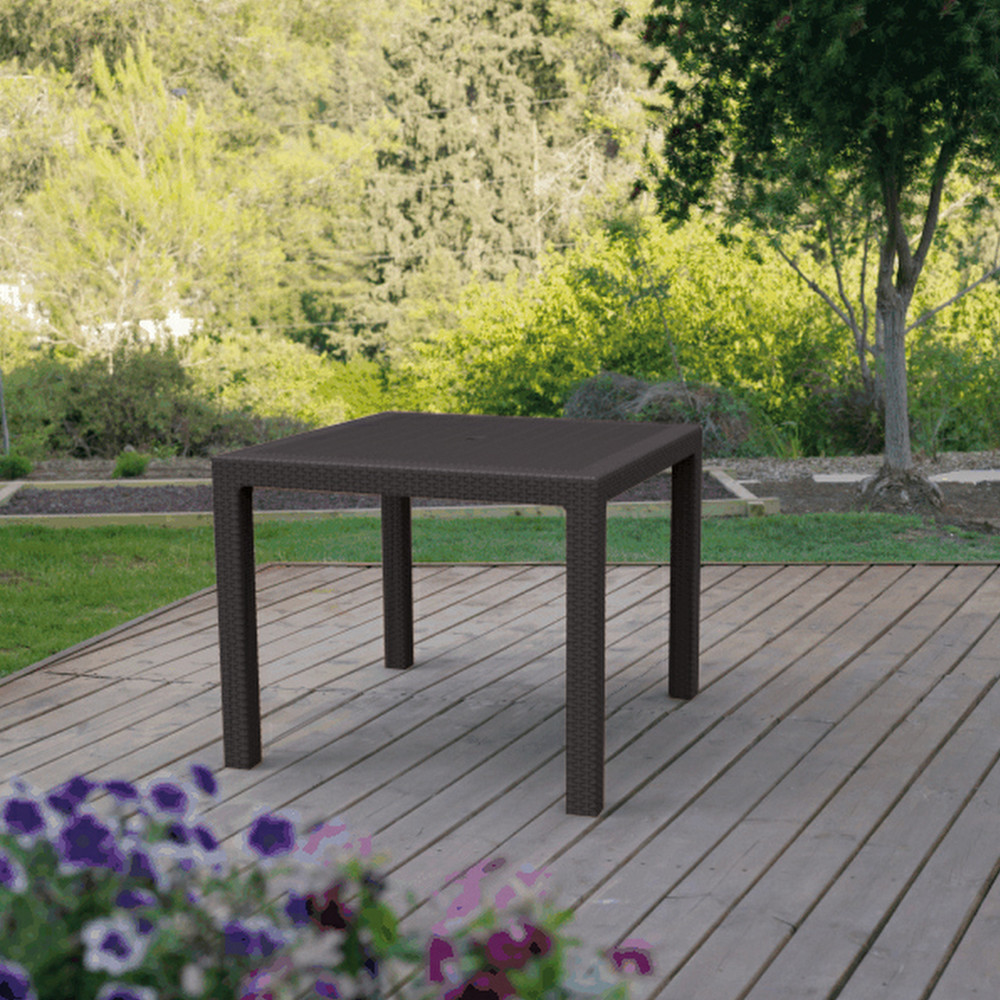 Masă de grădină Curver Melody Quartet, aspect ratan, maro închis 95x95 cm