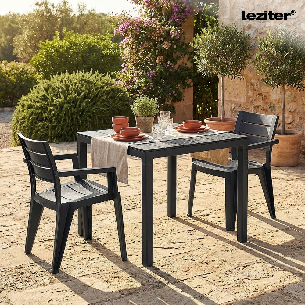 Descriere Masă grădină Leziter Evan plastic grafit,