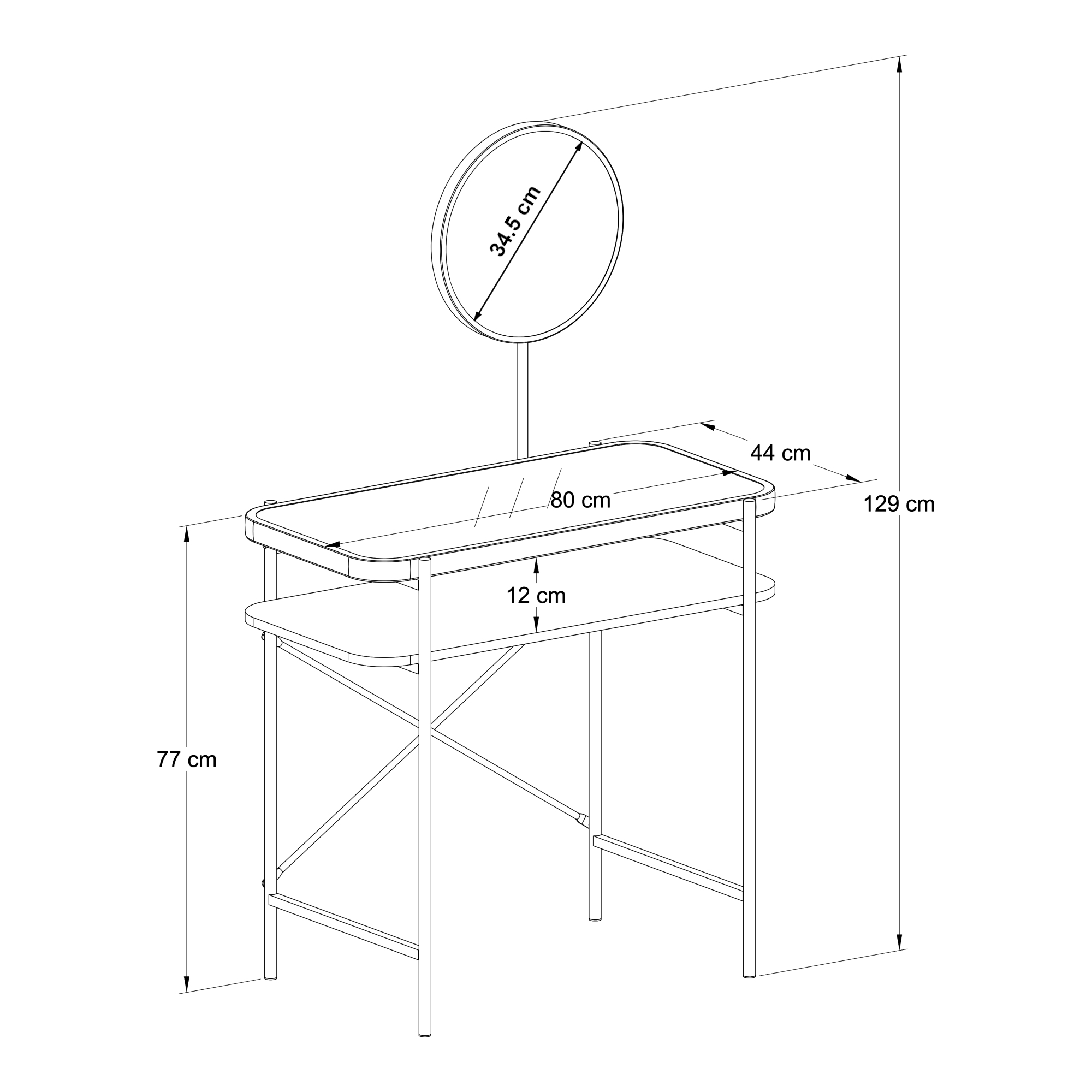Poate fi folosită ca masă cosmetică în dormitor, dressing sau chiar într-un colț decorativ al casei. Este ideală pentru machiaj zilnic, organizarea produselor de beauty și păstrarea la îndemână a accesoriilor preferate.