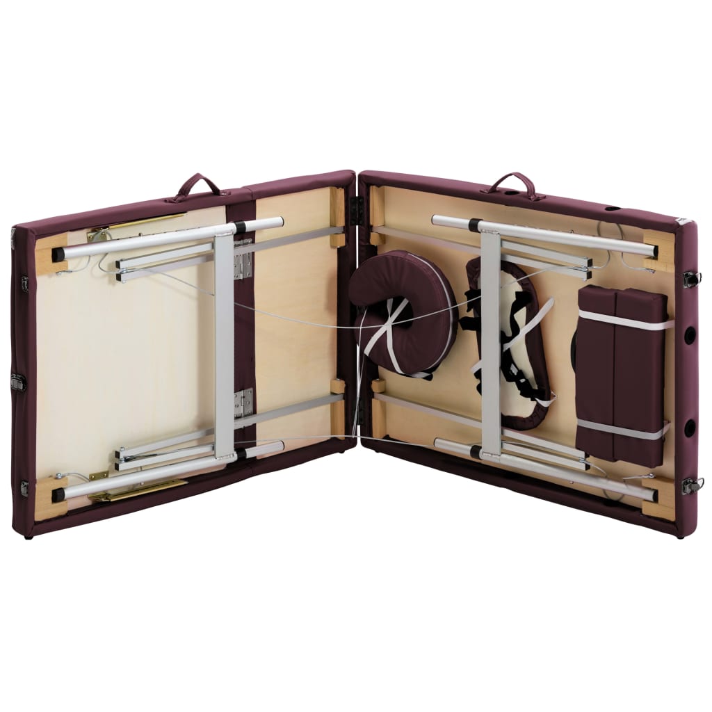 Masă de masaj pliabilă cu 3 zone, violet vin, aluminiu GartenMobel Dekor