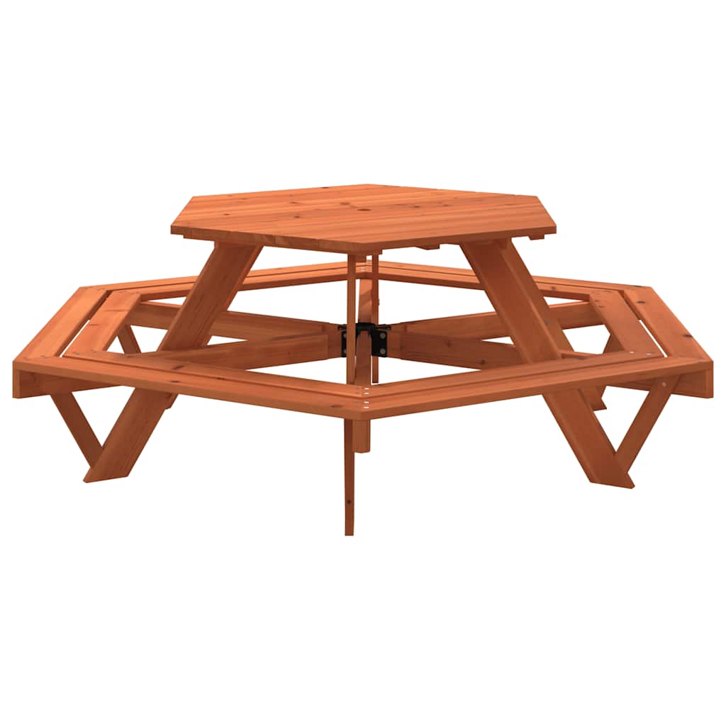 Masă de picnic pentru 6 copii cu bănci lemn masiv brad, hexagon GartenMobel Dekor