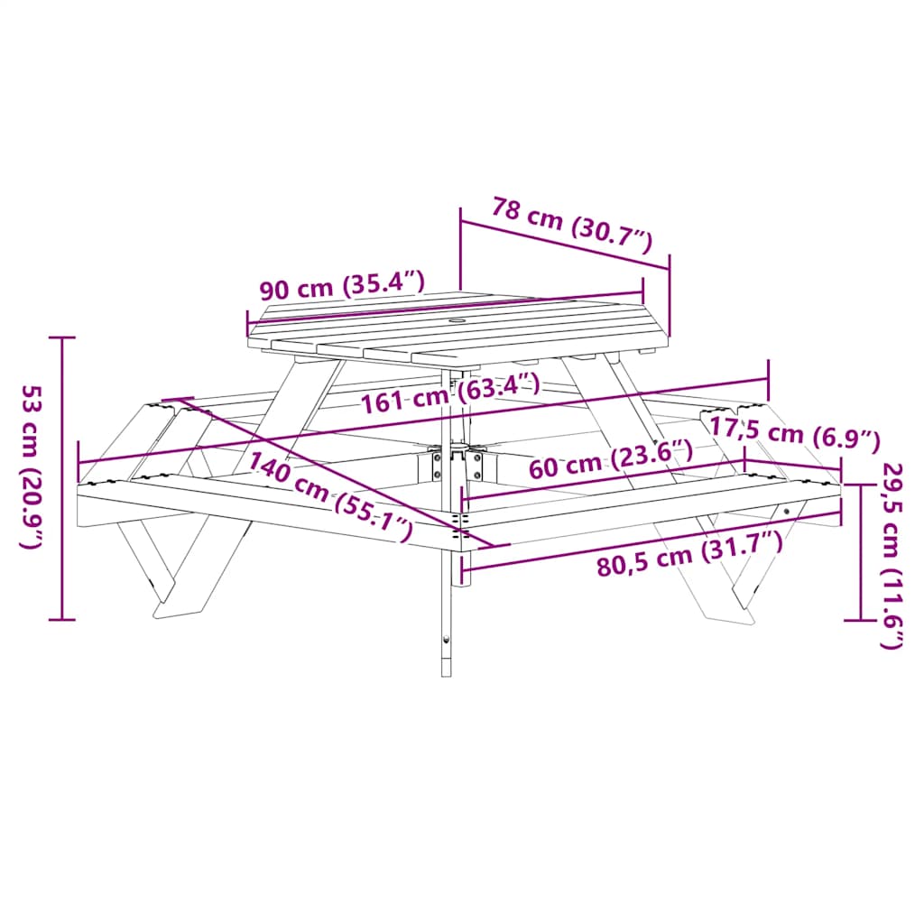 Această masă de picnic este perfectă pentru terase, grădini și spații exterioare, oferind un loc confortabil și primitor pentru ca toți copiii și prietenii lor să se relaxeze și să se bucure.
