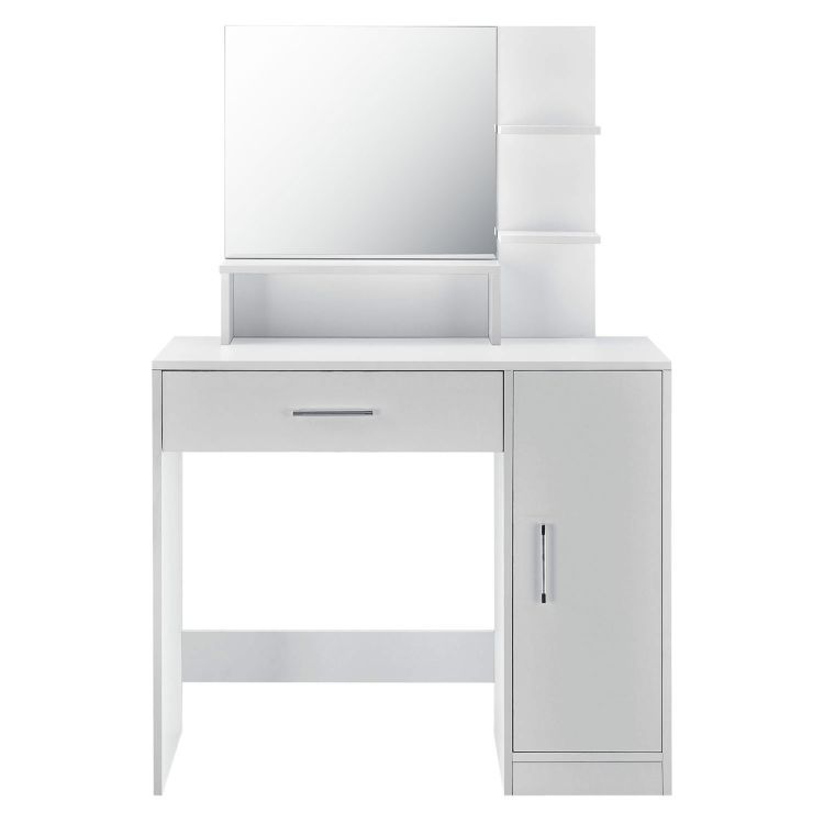 Masa de toaleta cu oglinda, sertar, dulap si rafturi, 90x38x138 cm, alb Household NewTrend