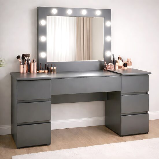 Descriere Masa toaleta/machiaj, Antonia, antracit, oglinda LED-uri,
