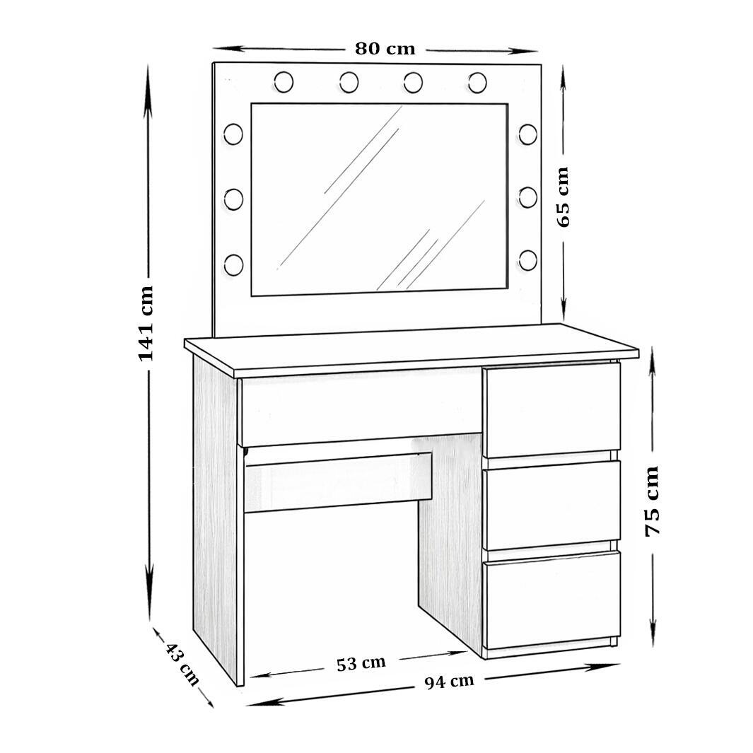 Depozitare eficienta: Cele 4 sertare spatioase iti permit sa iti organizezi produsele preferate, astfel incat totul sa fie la indemana si ordonat. Oglinda mare integrata completeaza perfect zona de machiaj.