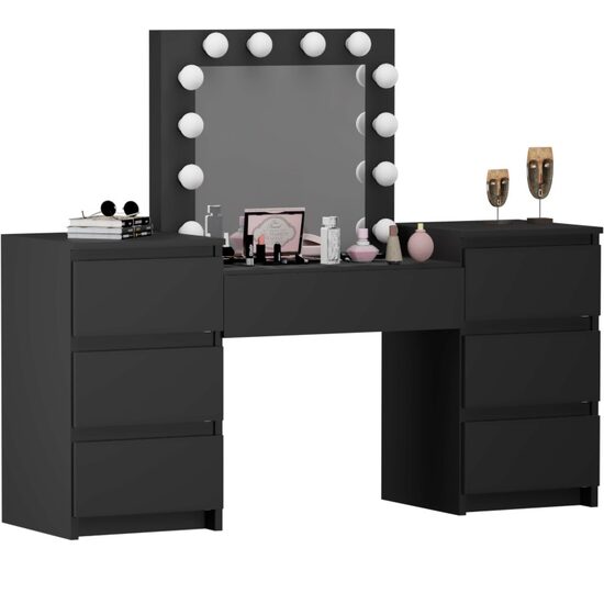 Descriere Masa toaleta/machiaj, negru, oglinda LED-uri, Silvia,