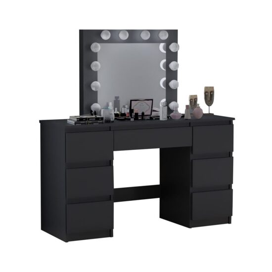 Descriere Masa toaleta/machiaj, negru, oglinda LED-uri, Vanessa130x43x143