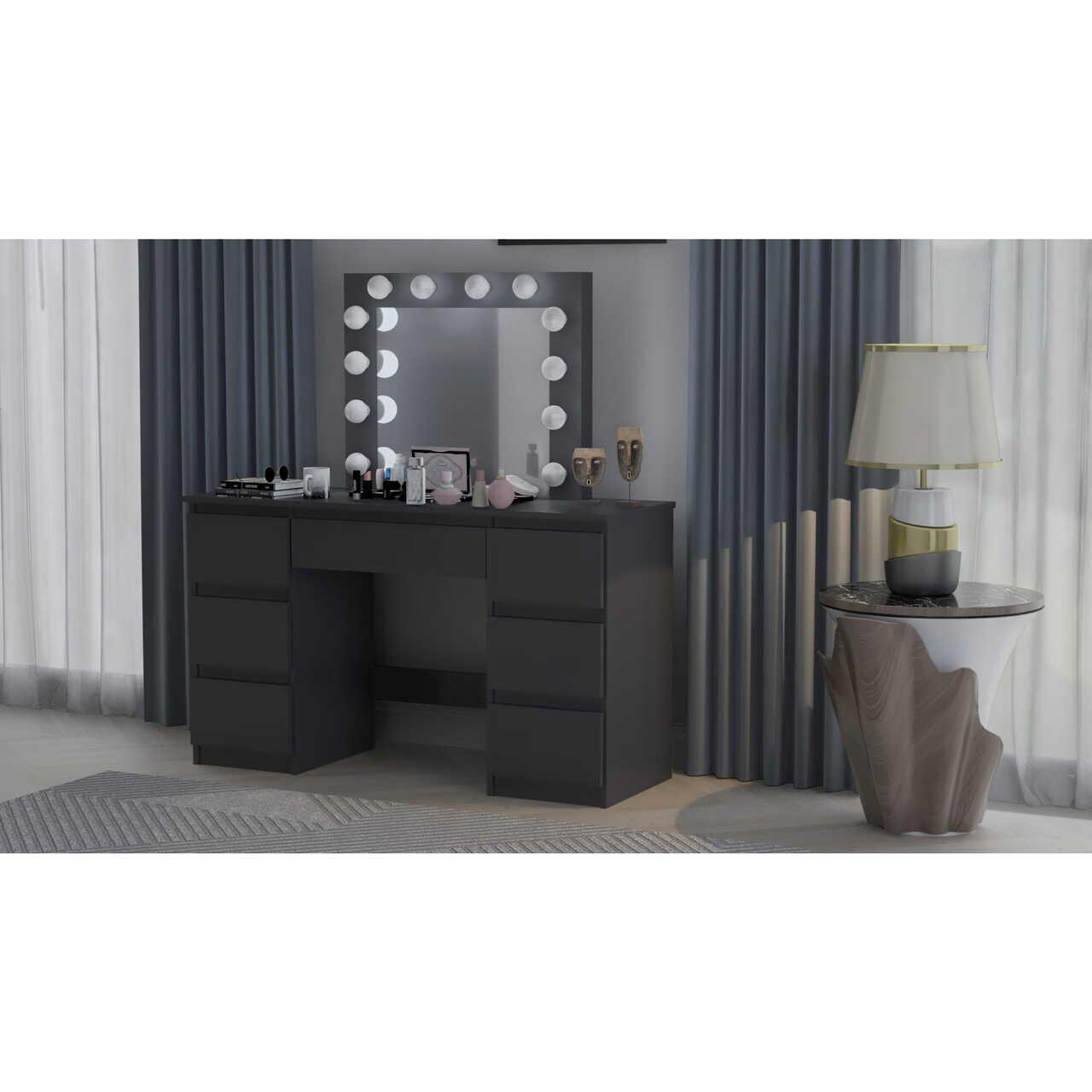 Masa de toaleta/machiaj, negru, cu oglinda si LED-uri, Vanessa130x43x143 cm GartenVIP DiyLine