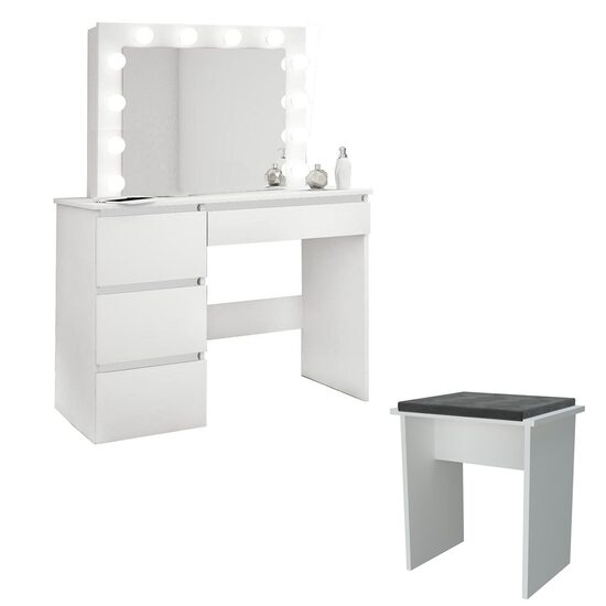 Descriere Masa toaleta/machiaj + Taburet, alba, oglinda