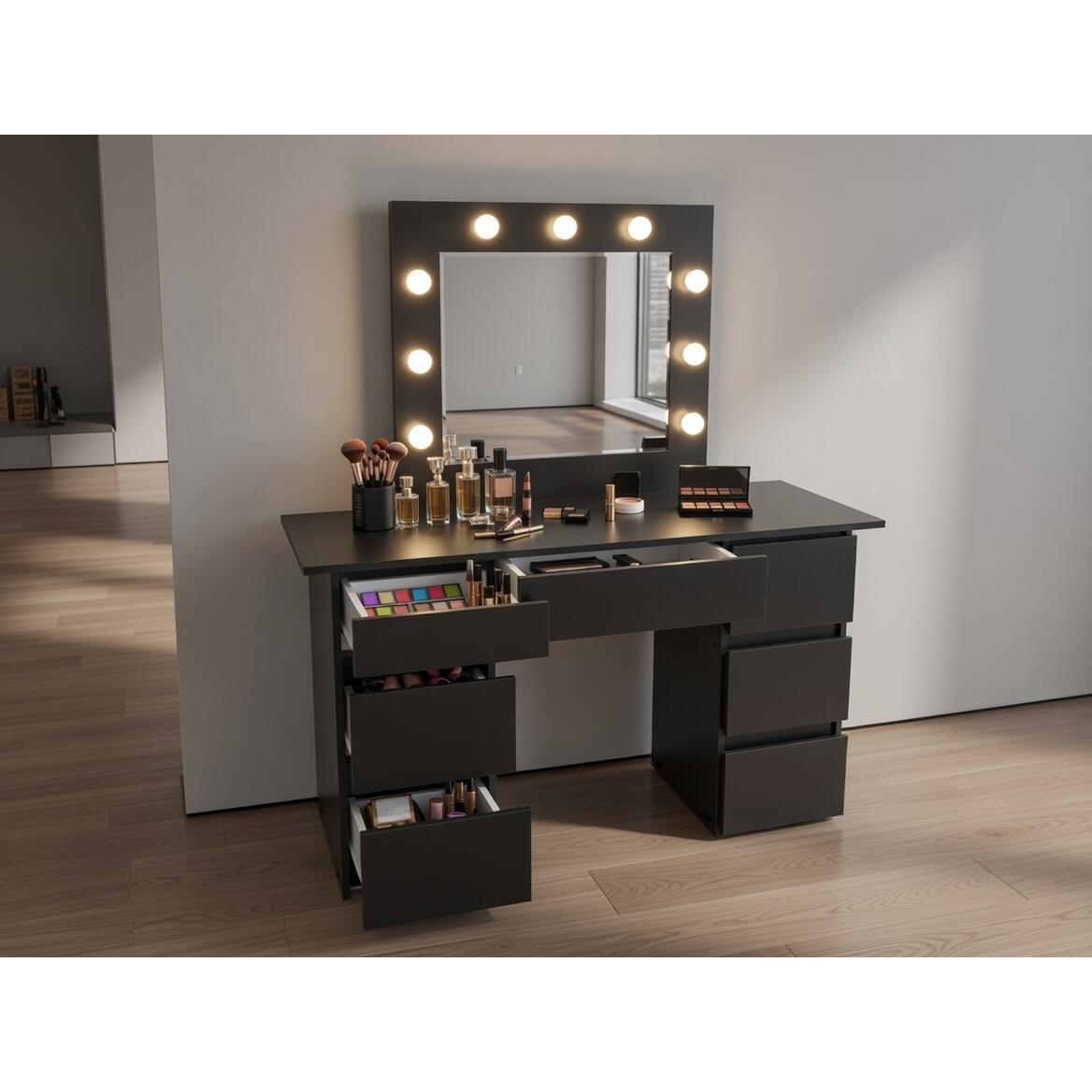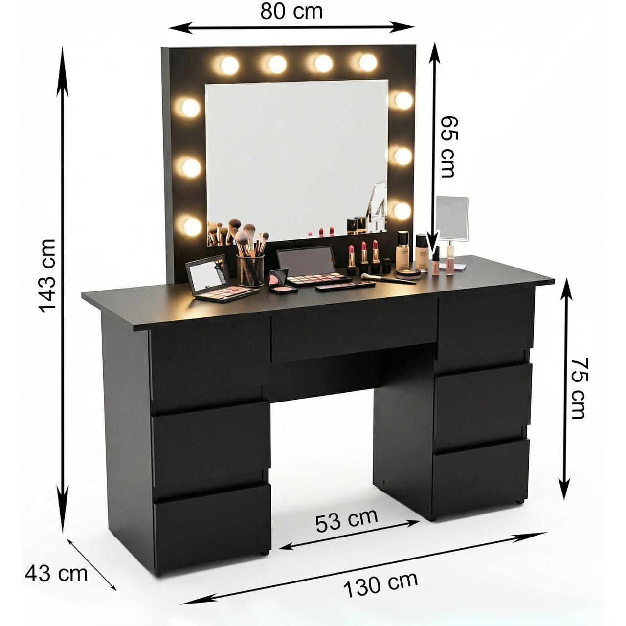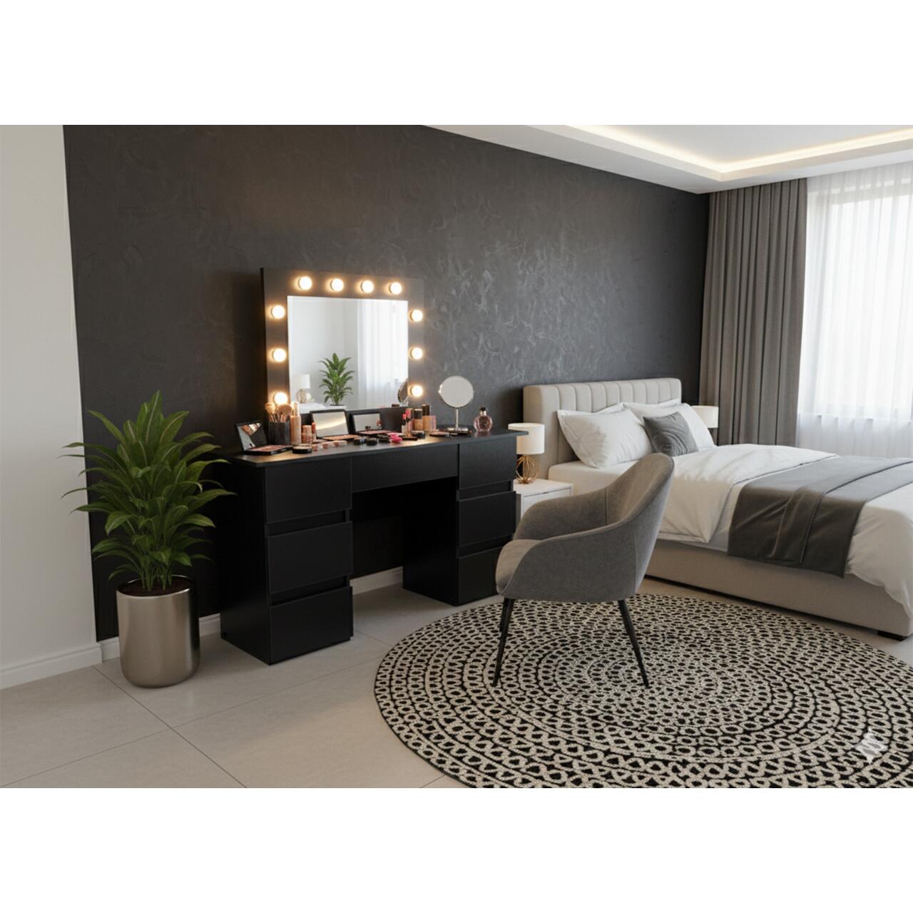 Descriere Masa toaleta/machiaj, Vanessa, negru, oglinda LED-uri,