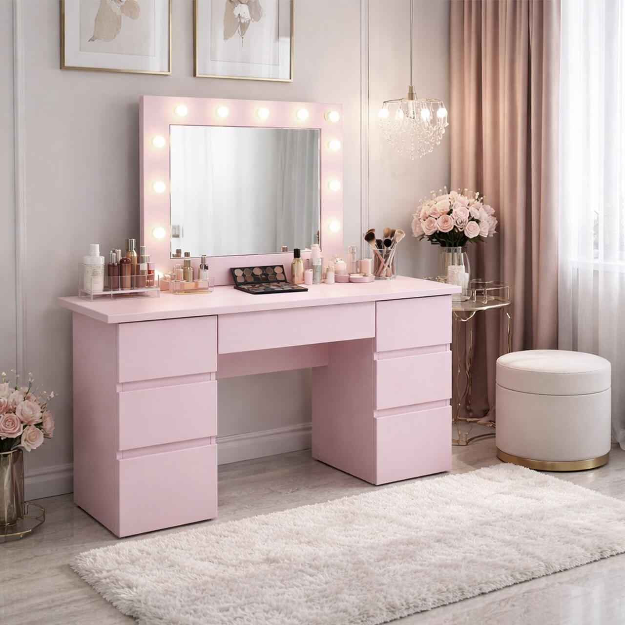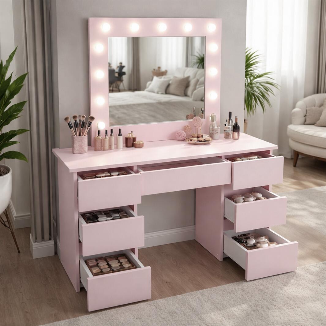 Descriere Masa toaleta/machiaj, Vanessa, roz, oglinda LED-uri,