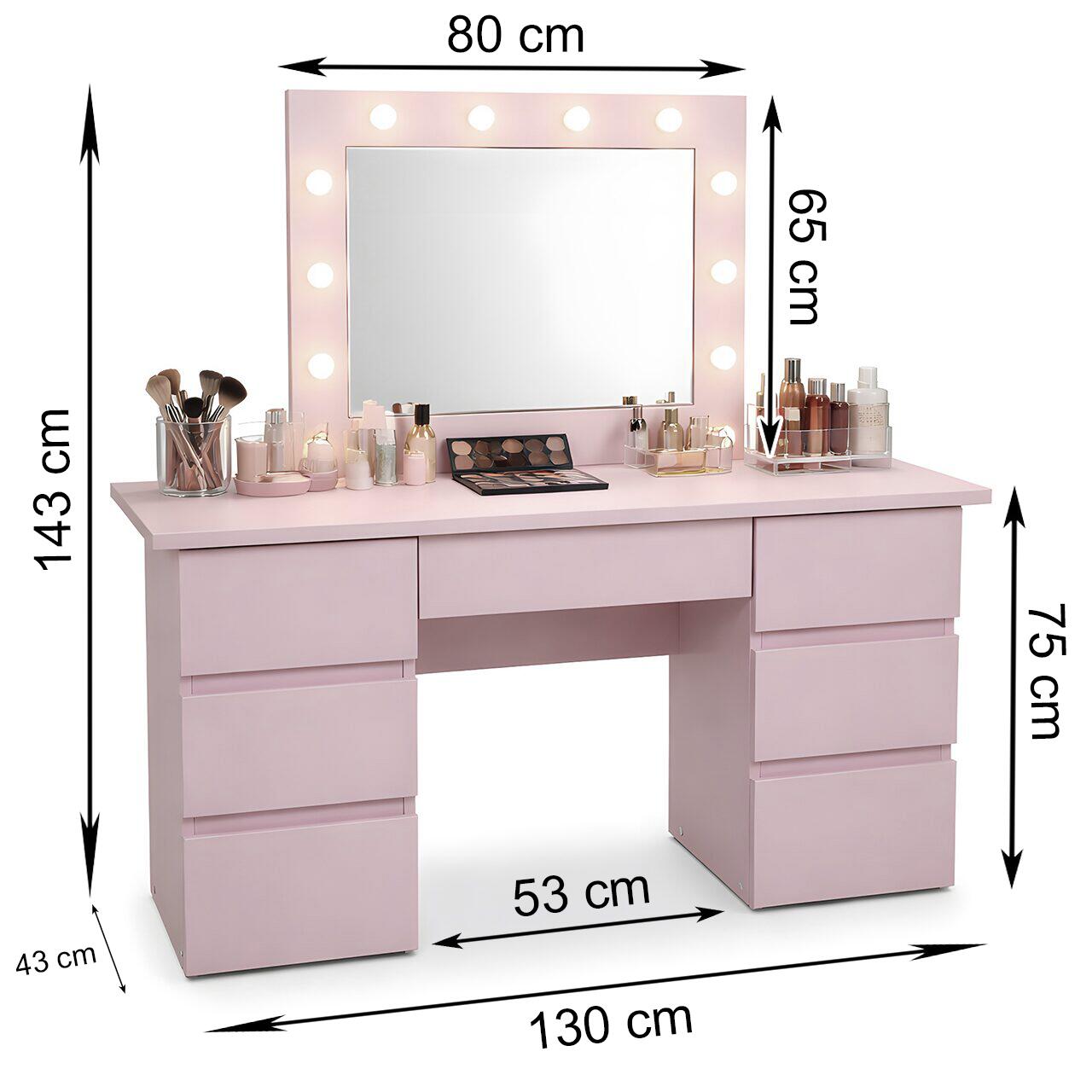 Masa de toaleta/machiaj, Vanessa, roz, cu oglinda si LED-uri, 130x43x143 cm GartenVIP DiyLine