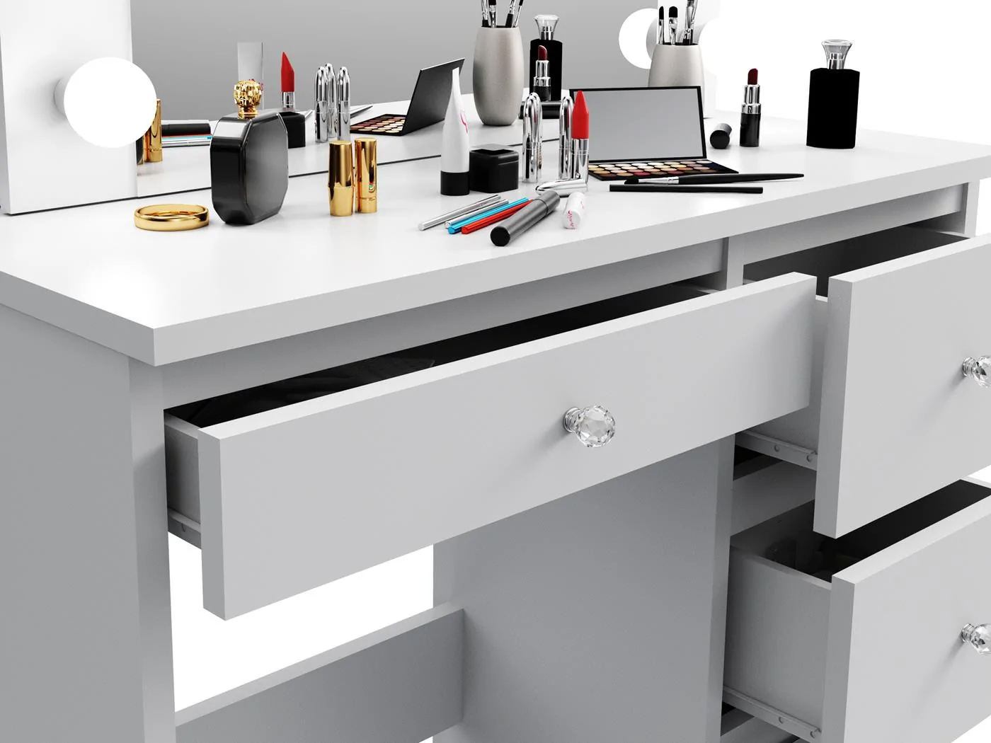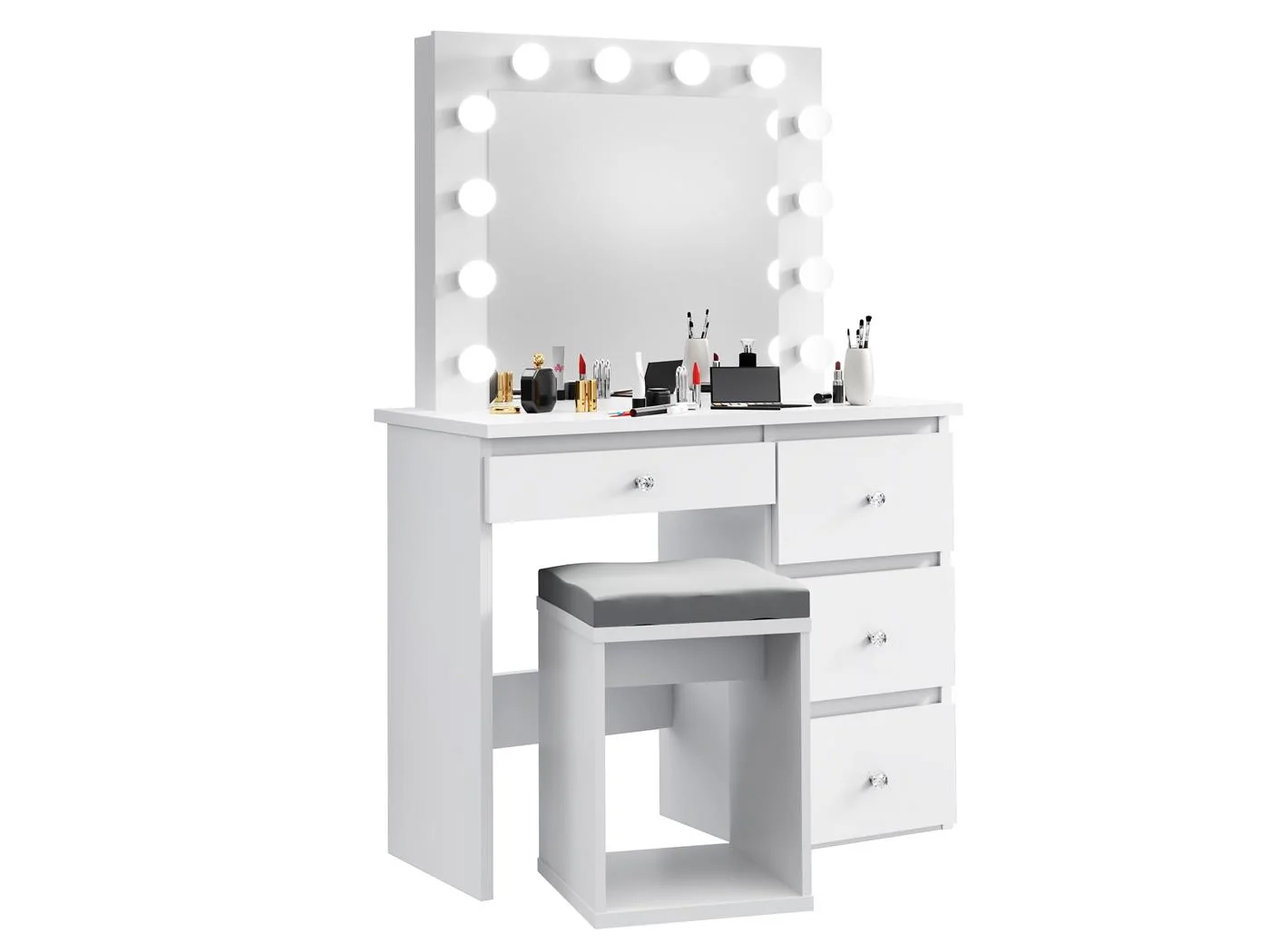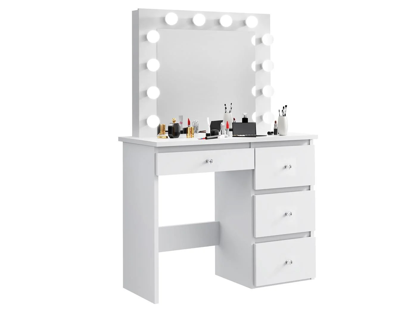 Masa de toaleta si machiaj Madlen cu oglinda LED si 4 sertare, 94x43x140 cm, alb Household NewTrend