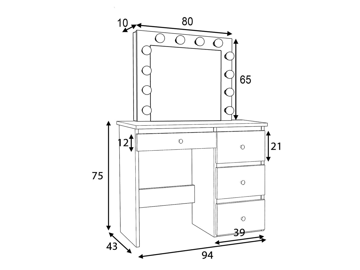 Specificatii Masa toaleta machiaj Madlen oglinda LED