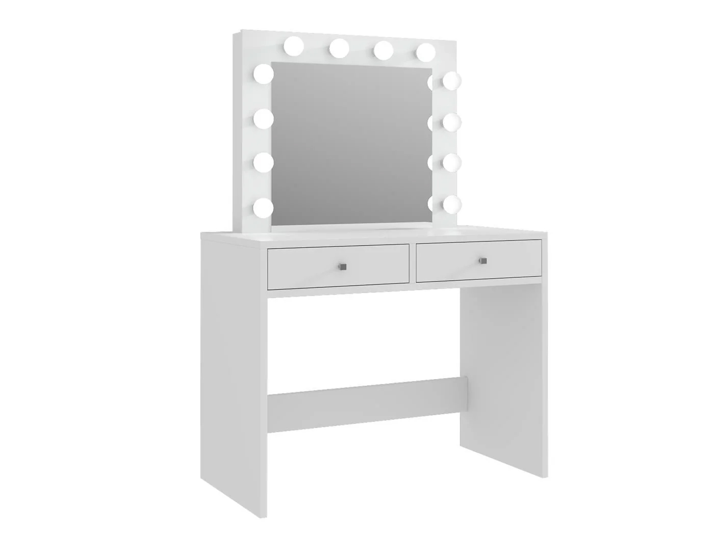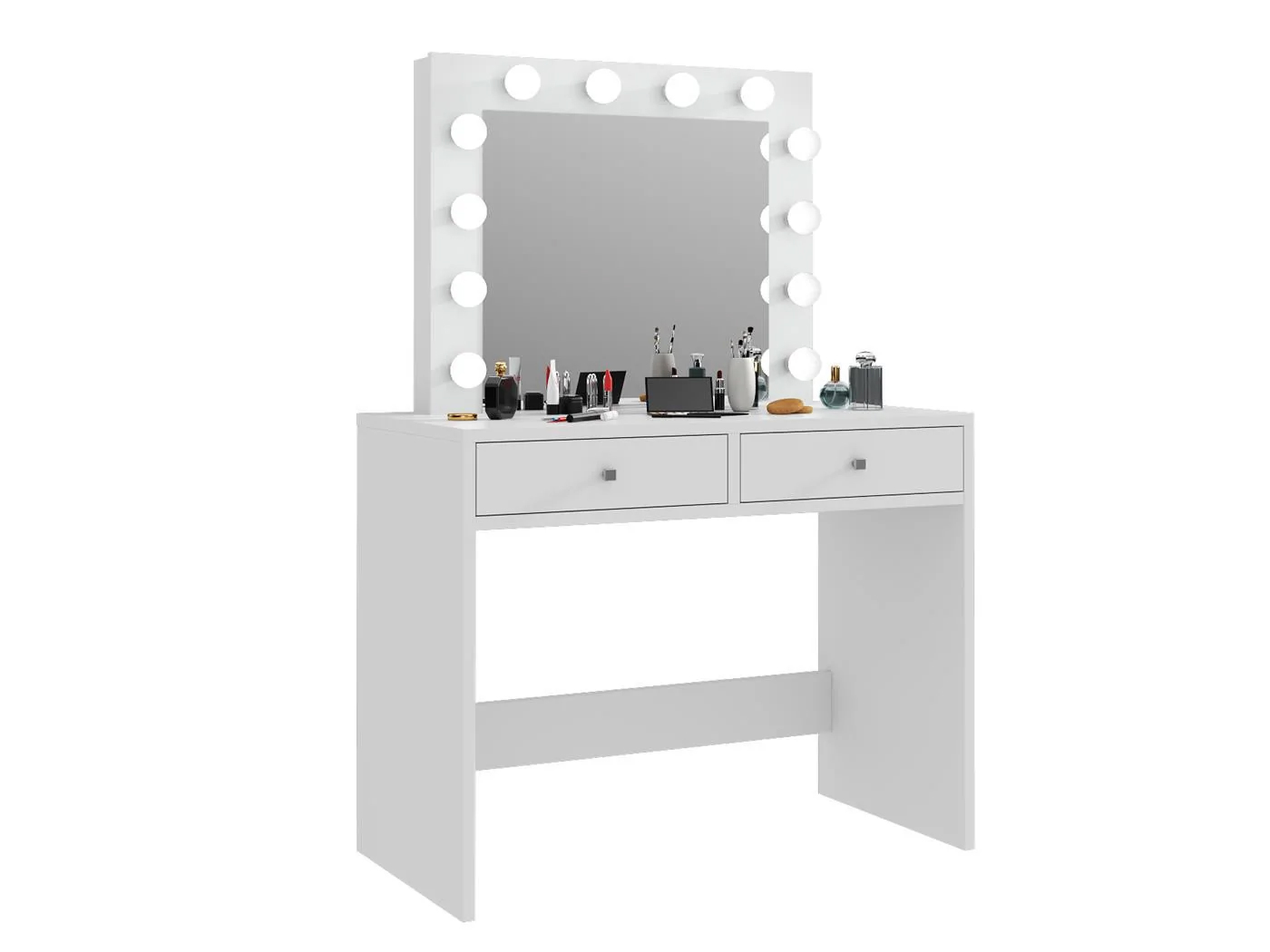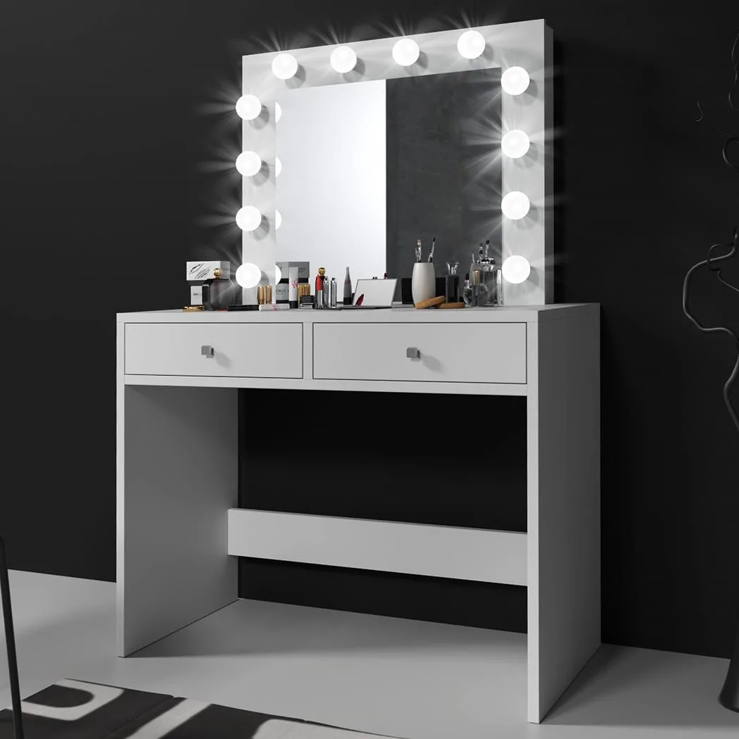 Masa de toaleta si machiaj Mega 12 LED, 100x50x144 cm, cu oglinda iluminata si 2 sertare, alb Household NewTrend