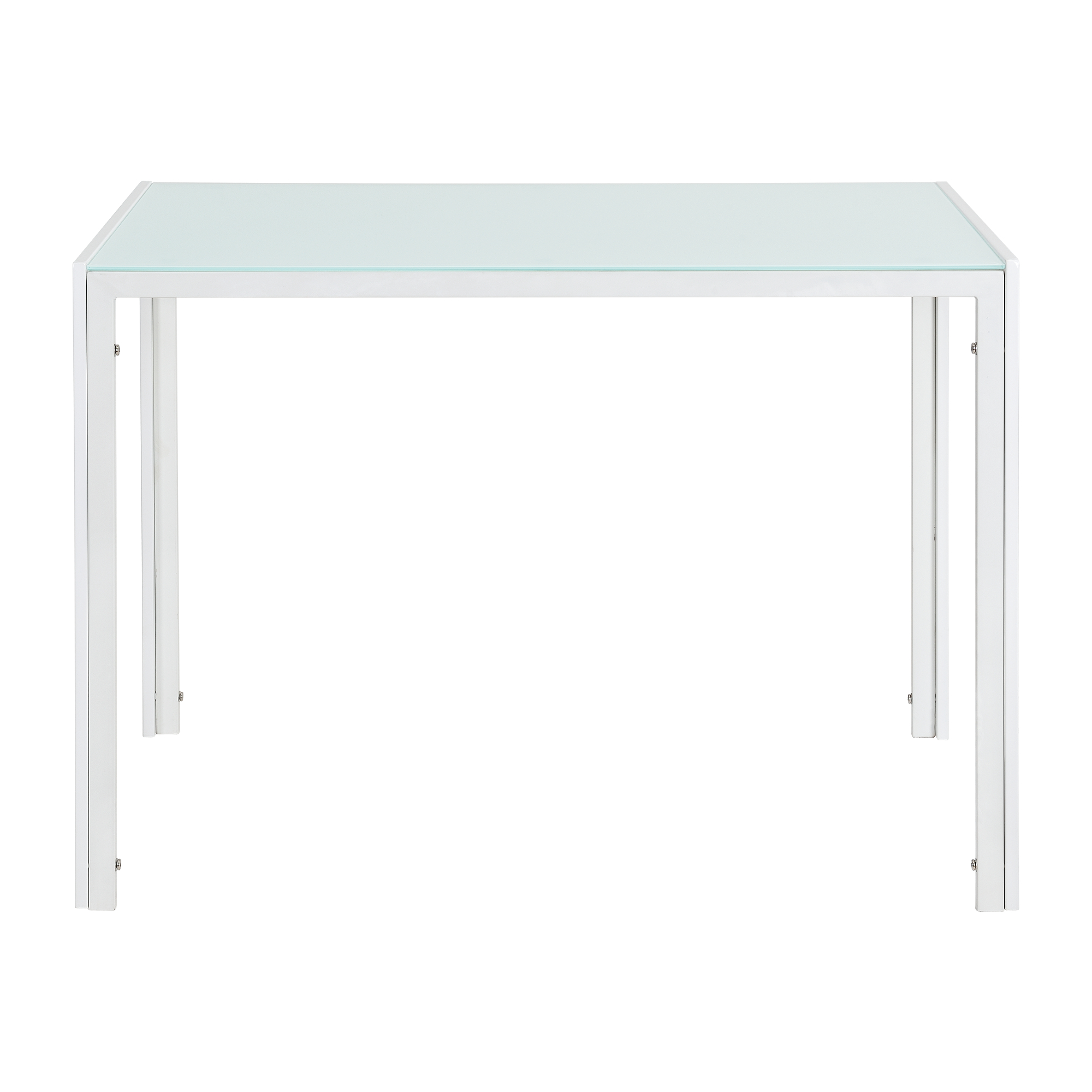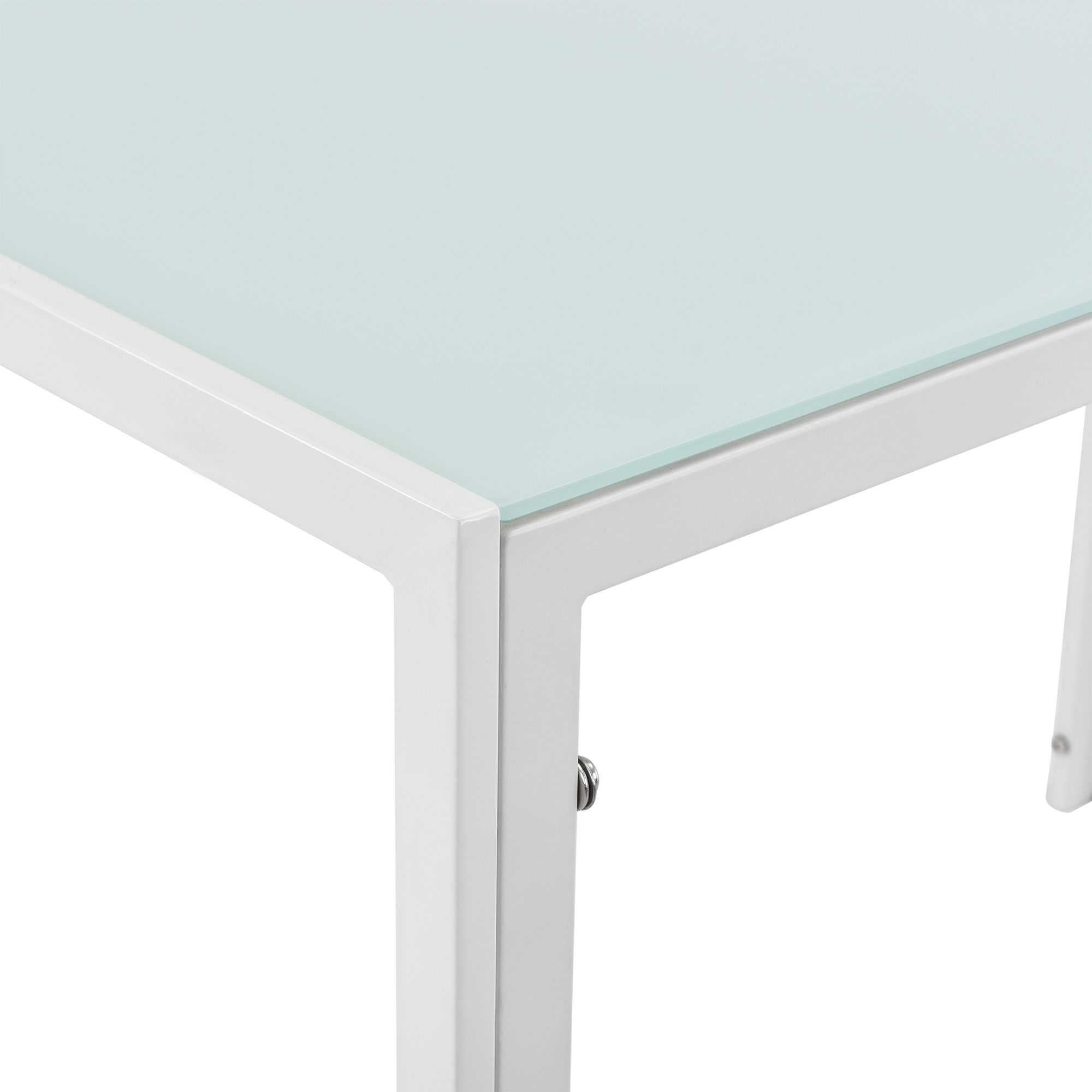 Masă dining Enschede albă 105x60 cm cu blat din sticlă și cadru metalic