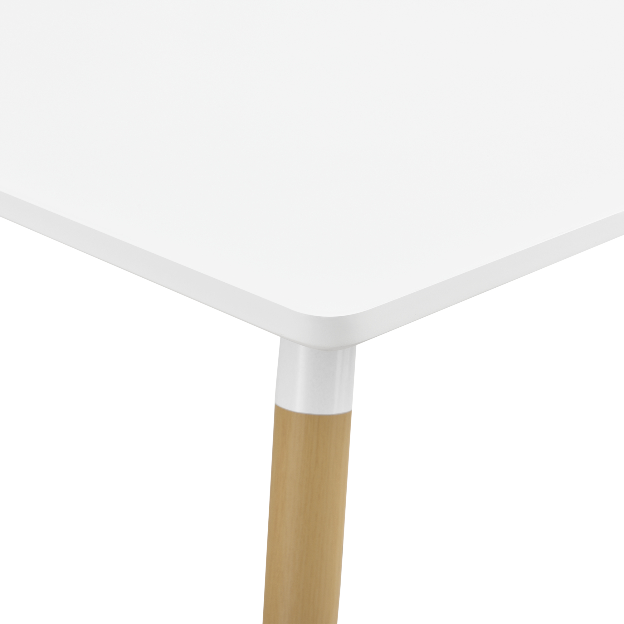 Această masă dining pătrată impresionează prin aspectul său curat, modern și ușor de integrat în bucătărie, dining sau într-un colț de luat masa. Combinația dintre blatul alb mat și picioarele cu aspect de lemn de fag oferă un aer nordic, luminos și prietenos, potrivit atât pentru interioare minimaliste, cât și pentru amenajări contemporane.