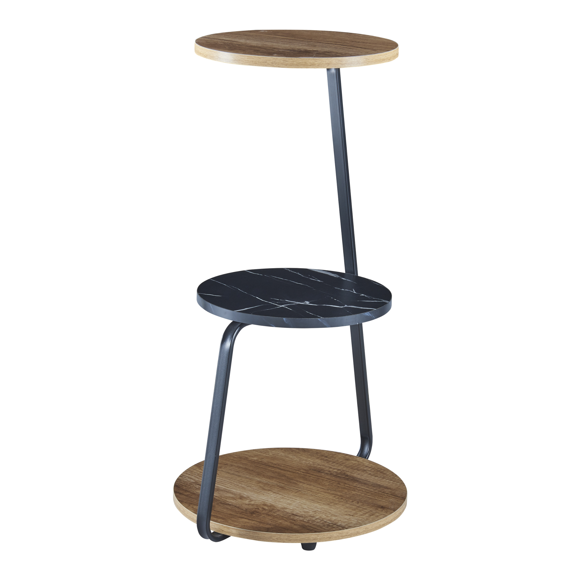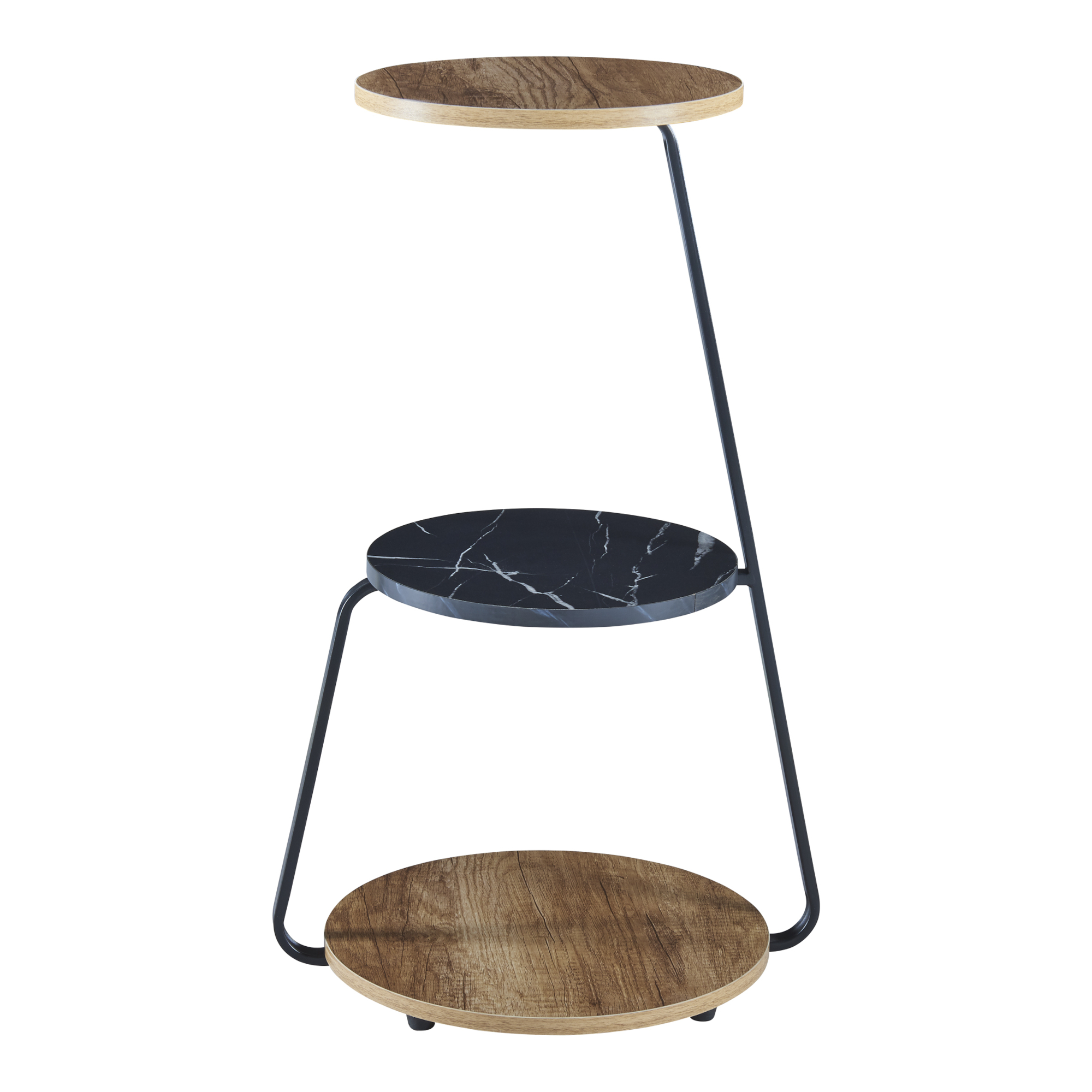 Masa laterala Sipoo efect lemn nuc negru marmorat negru cu 3 rafturi [en.casa] HausGarden Leisure