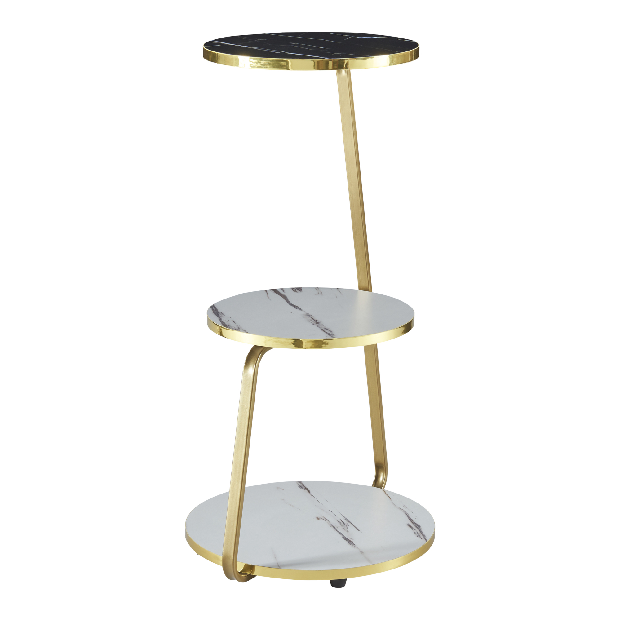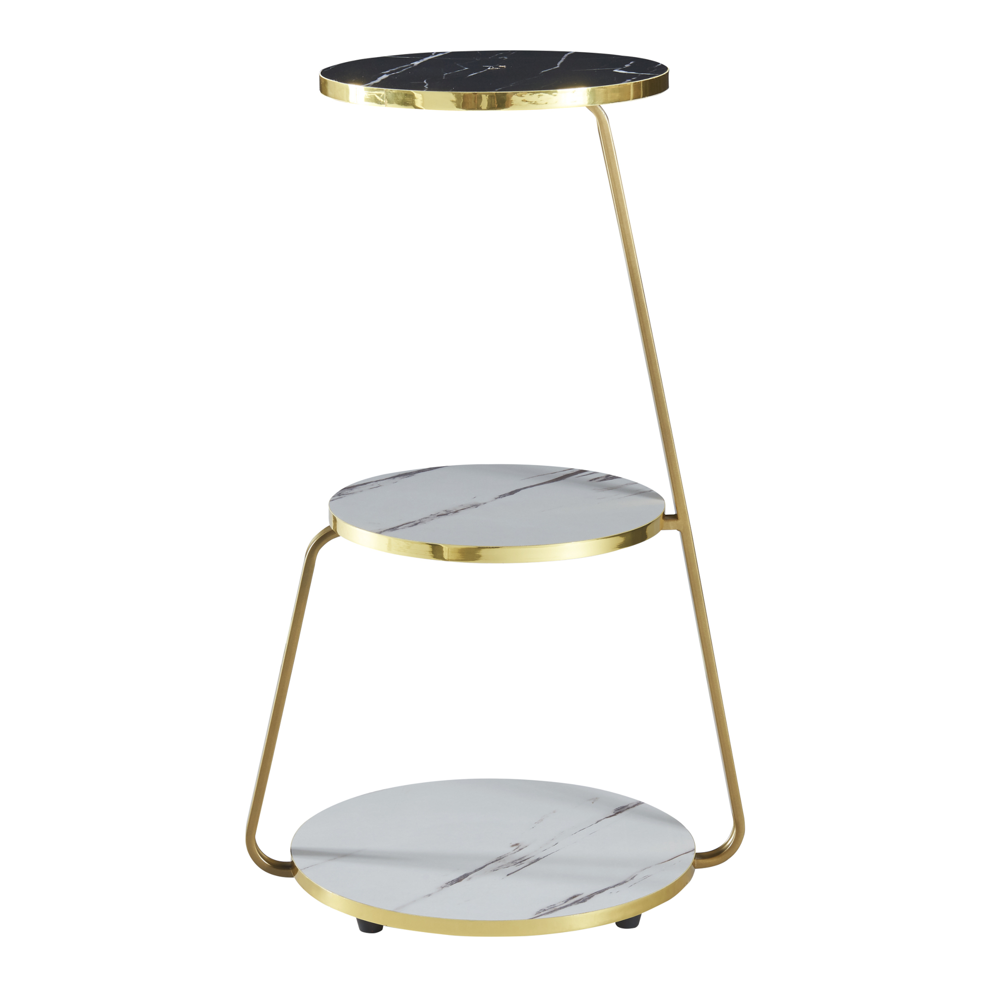 Masa laterala Sipoo efect marmura alba, efect marmura neagra auriu cu 3 rafturi [en.casa] HausGarden Leisure