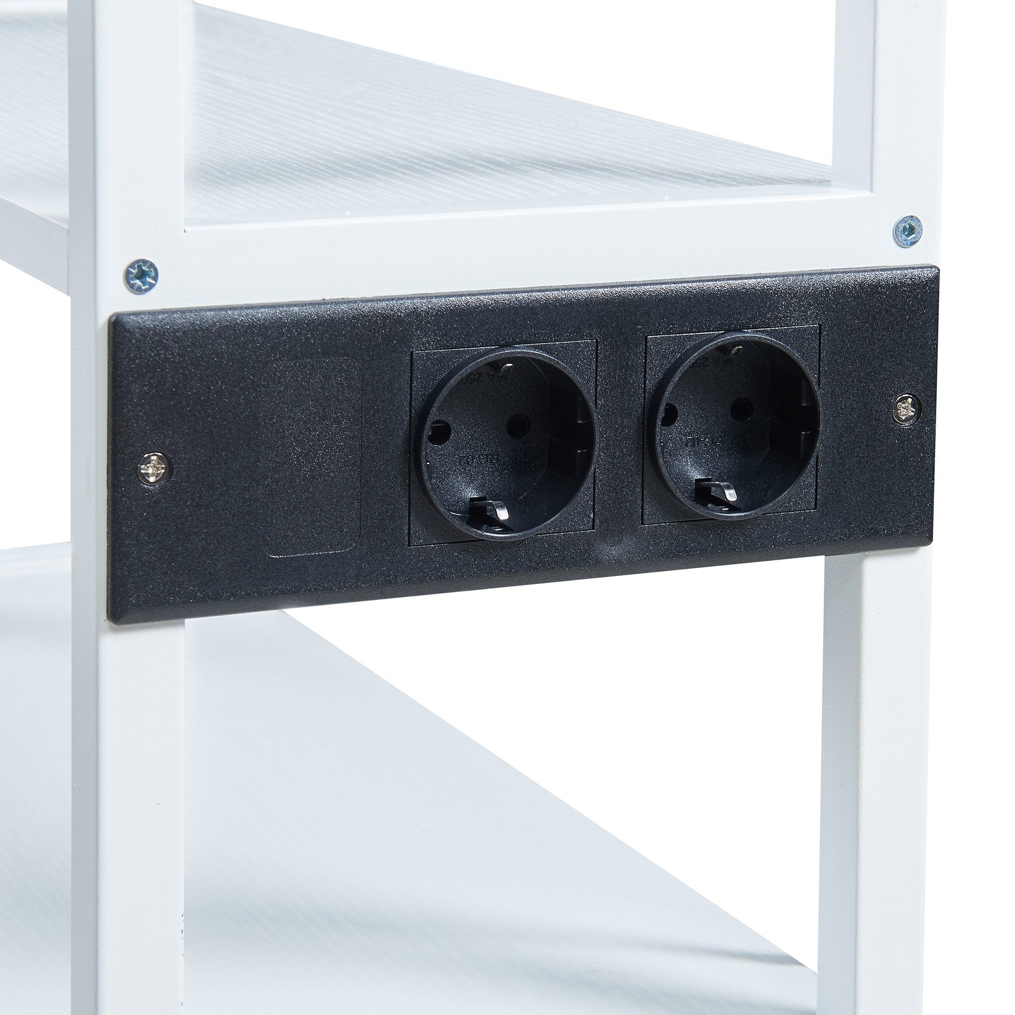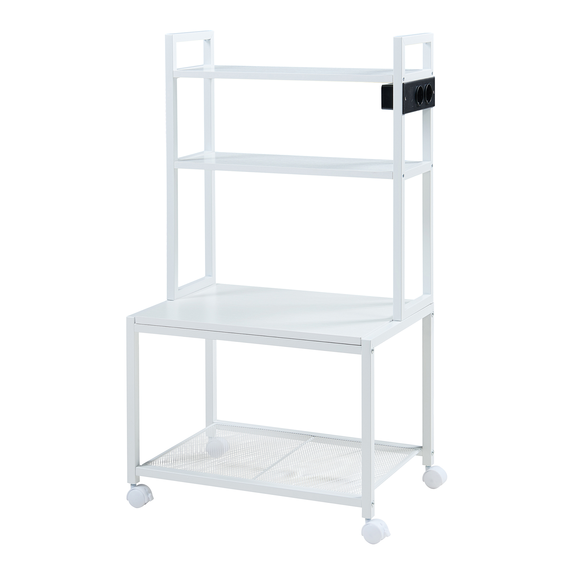 Masă mobilă pentru imprimantă Svanaldsvipp cu rafturi și prize, albă