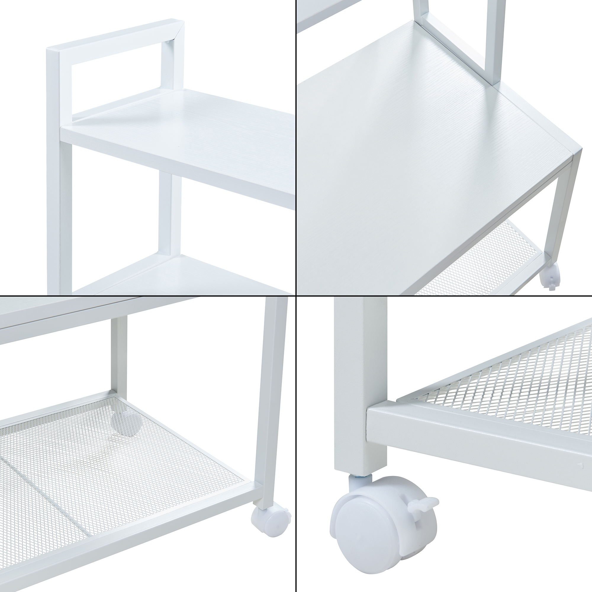 Blatul generos oferă loc suficient pentru imprimante mari sau multifuncționale, iar cele două polițe superioare sunt perfecte pentru depozitarea accesoriilor de birou, cărților sau obiectelor decorative. Polița inferioară tip grilaj adaugă spațiu suplimentar pentru dosare, topuri de hârtie și alte consumabile.