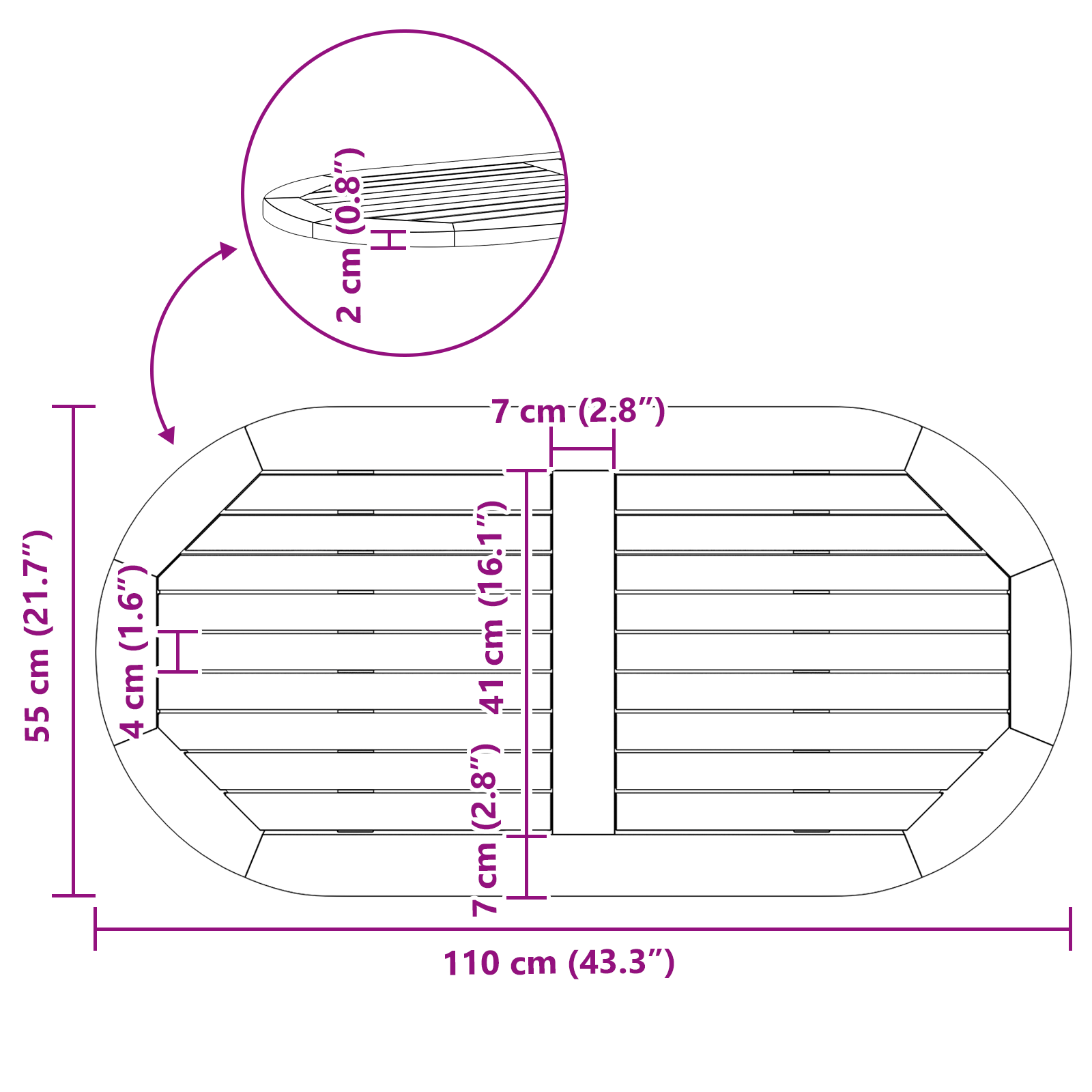 - Surface Height: 2 cm