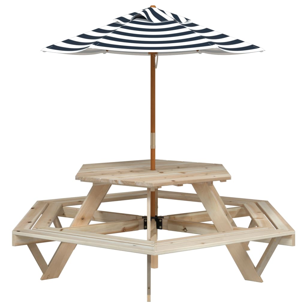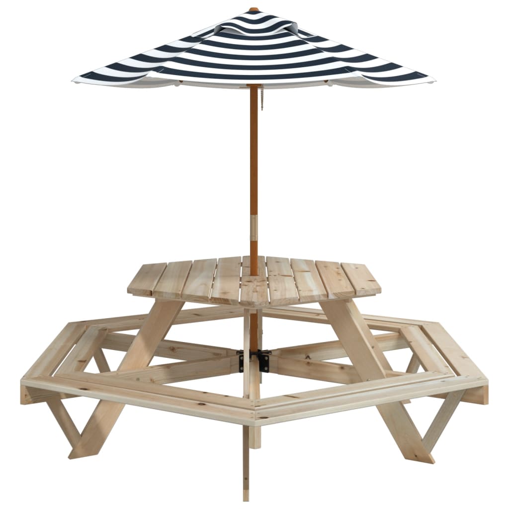 Masă picnic pentru 6 copii cu umbrelă, hexagon, lemn masiv brad GartenMobel Dekor