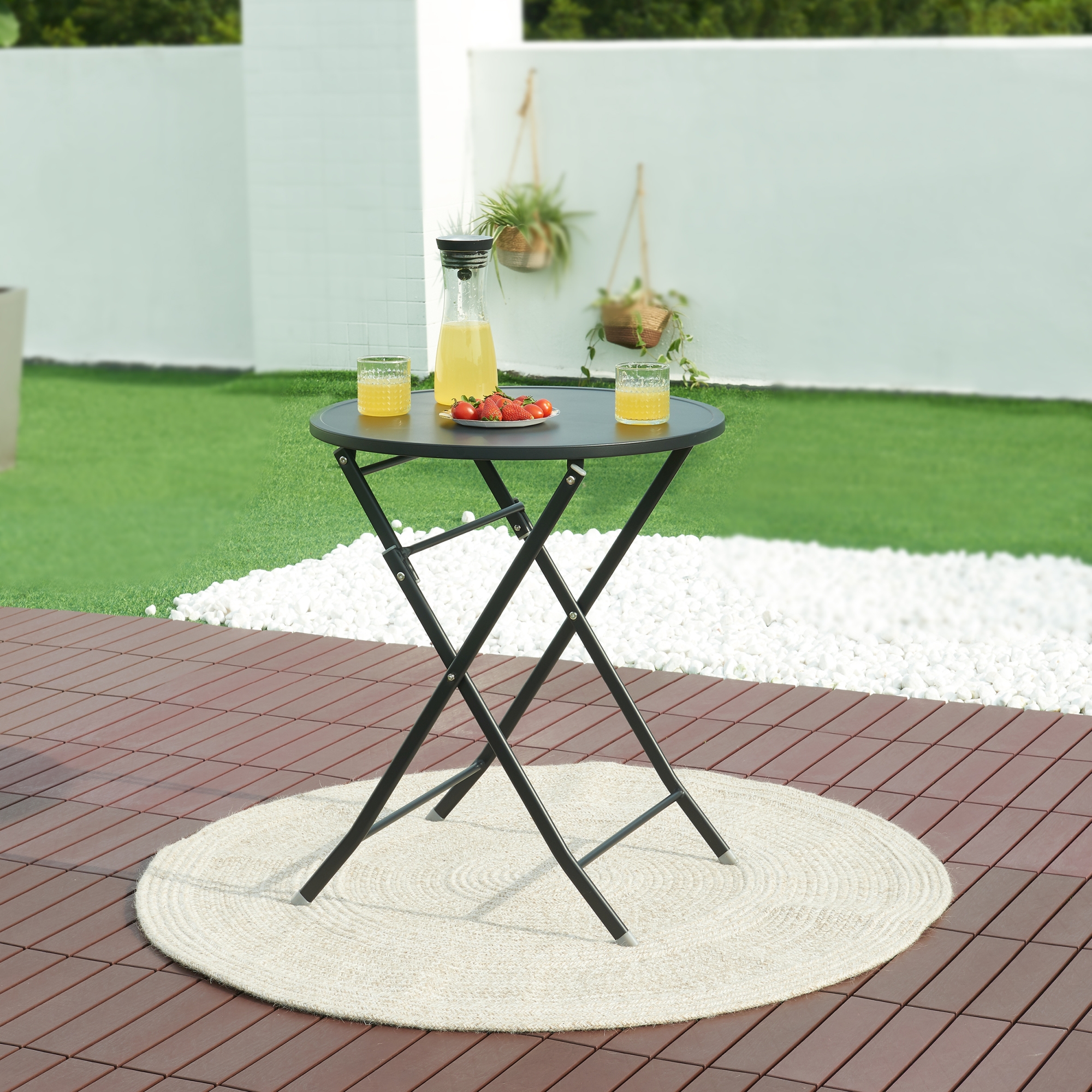Masă pliabilă de grădină Sande – practică, elegantă și ușor de integrat în orice spațiu exterior. Această masă pliabilă de grădină este ideală pentru momentele petrecute pe balcon, terasă sau în curte, dar și pentru ieșirile la camping. Designul rotund și finisajul negru îi oferă un aspect modern, iar construcția din oțel asigură stabilitate și rezistență în utilizarea de zi cu zi.
