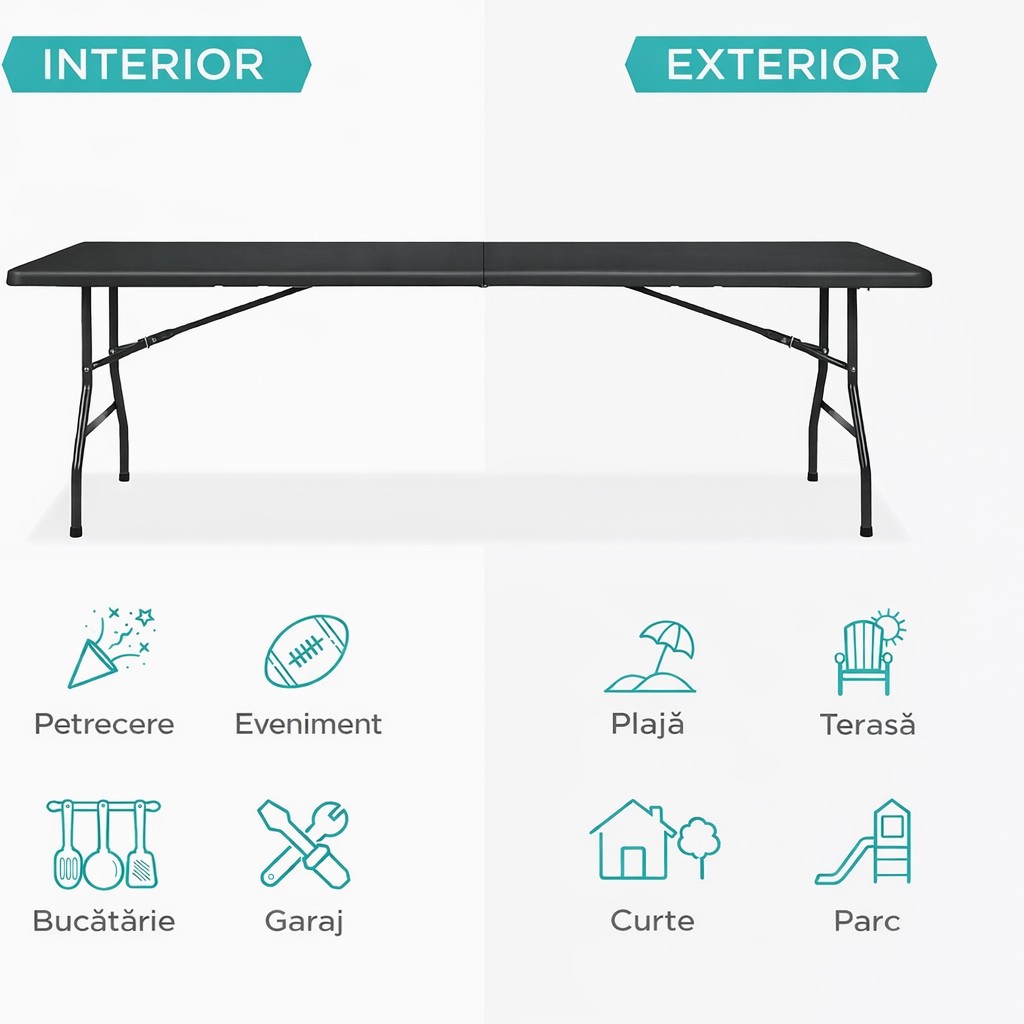 Masă pliabilă dreptunghiulară pentru grădină și evenimente, 240x75x74 cm, negru