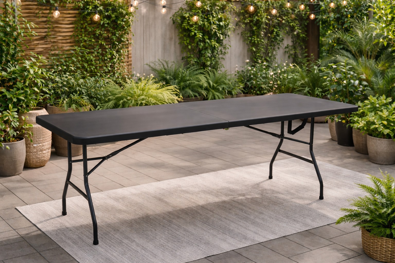 Alege o masa pliabila pentru evenimente practica, rezistenta si usor de transportat, potrivita pentru petreceri, catering, picnicuri, banchete sau iesiri in aer liber. Datorita sistemului de pliere tip valiza, aceasta masa dreptunghiulara pliabila se depoziteaza simplu si se muta rapid oriunde ai nevoie de un blat generos si stabil.