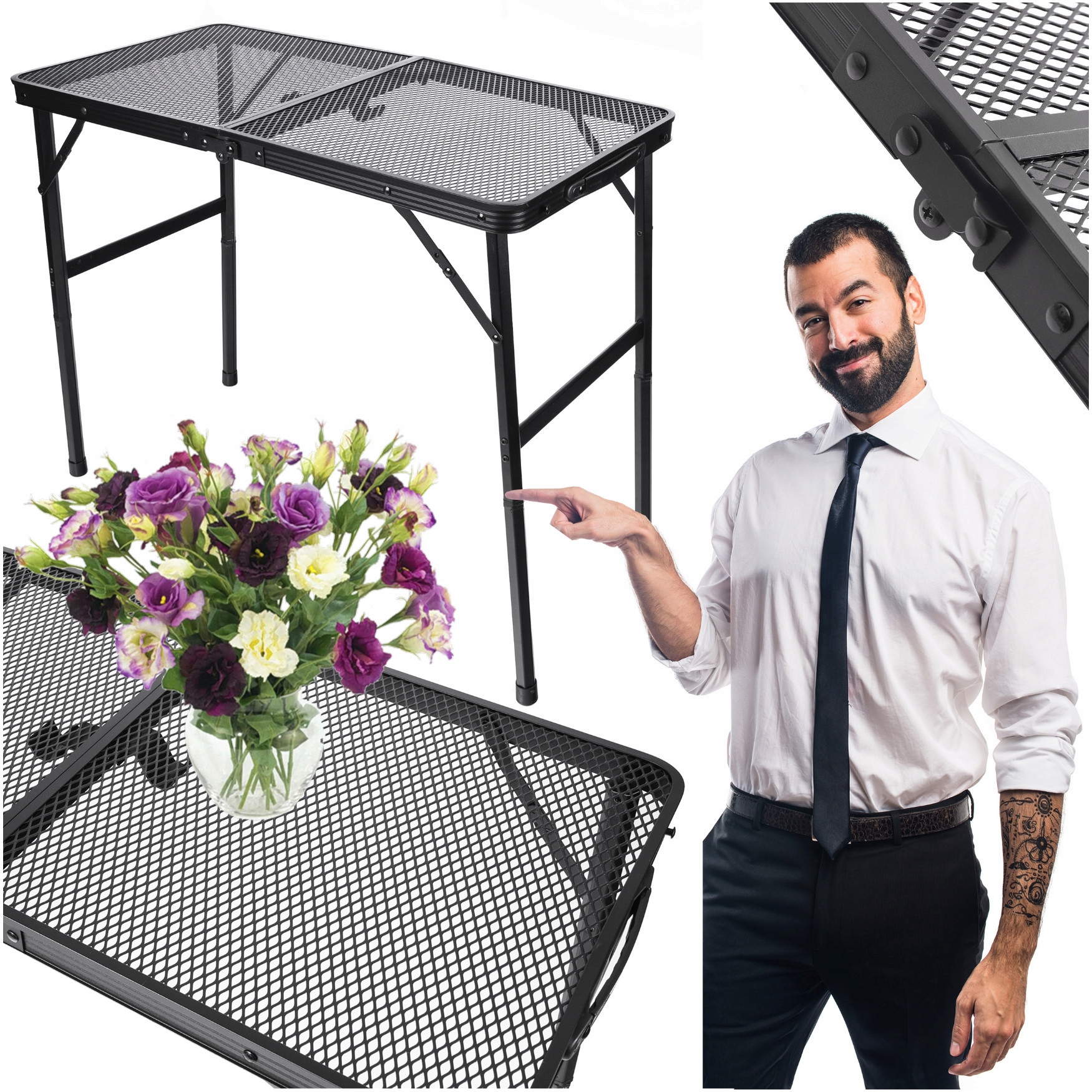 Modelul este prevazut cu inaltime reglabila, astfel incat il poti adapta rapid in functie de activitate. Cand nu este folosita, masa se pliaza compact si poate fi depozitata cu usurinta in portbagaj, geanta de calatorie sau intr-un spatiu restrans.
