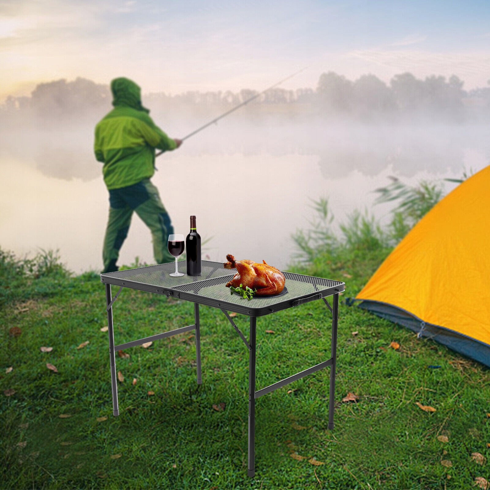 Utilizare: masa poate fi folosita pentru servirea mesei, pregatirea accesoriilor de camping, depozitarea temporara a obiectelor sau activitati de relaxare in aer liber. Este potrivita atat pentru excursii, cat si pentru uz casnic, in gradina sau pe balcon.