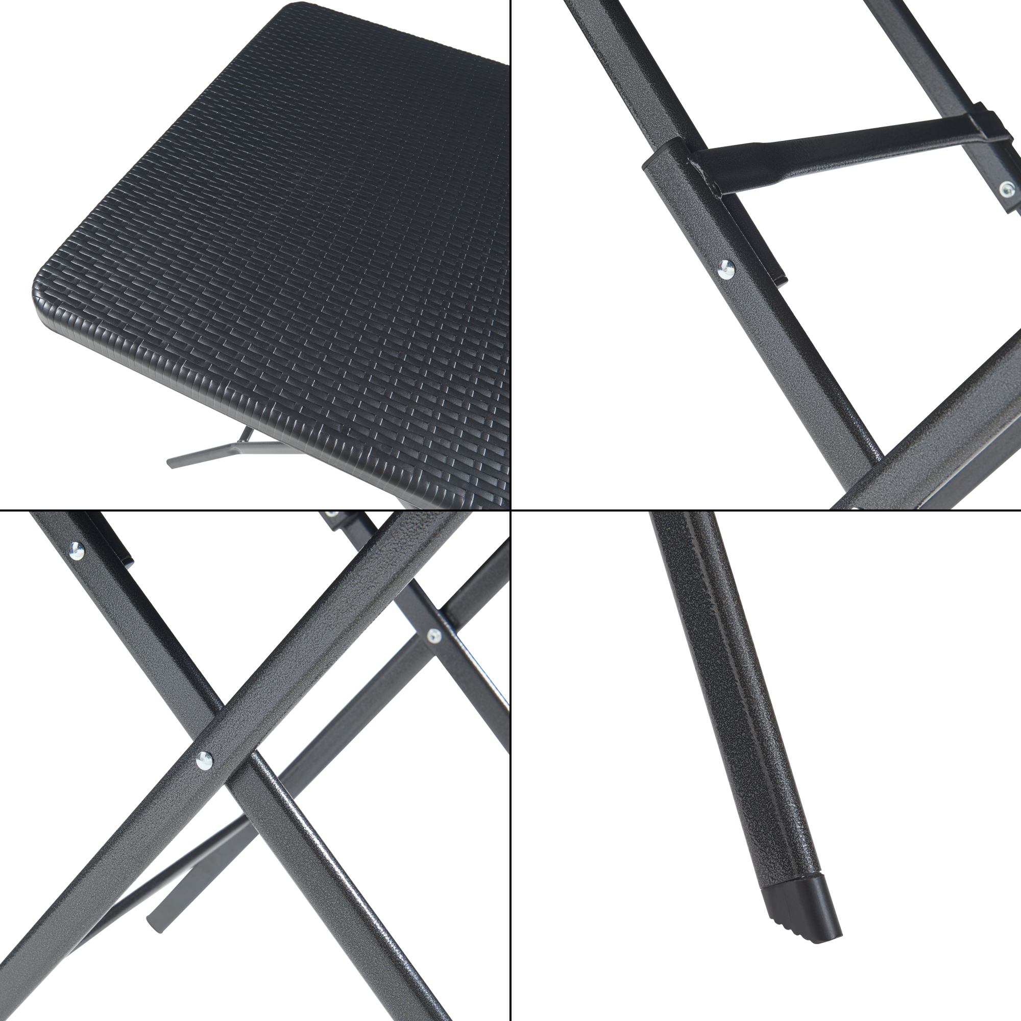 Datorită funcției de pliere, masa se montează rapid și se strânge la fel de simplu atunci când nu este folosită. Cadrul metalic robust oferă susținere stabilă, iar blatul din HDPE este rezistent la intemperii și ușor de întreținut, fiind ideal pentru folosire frecventă în exterior.