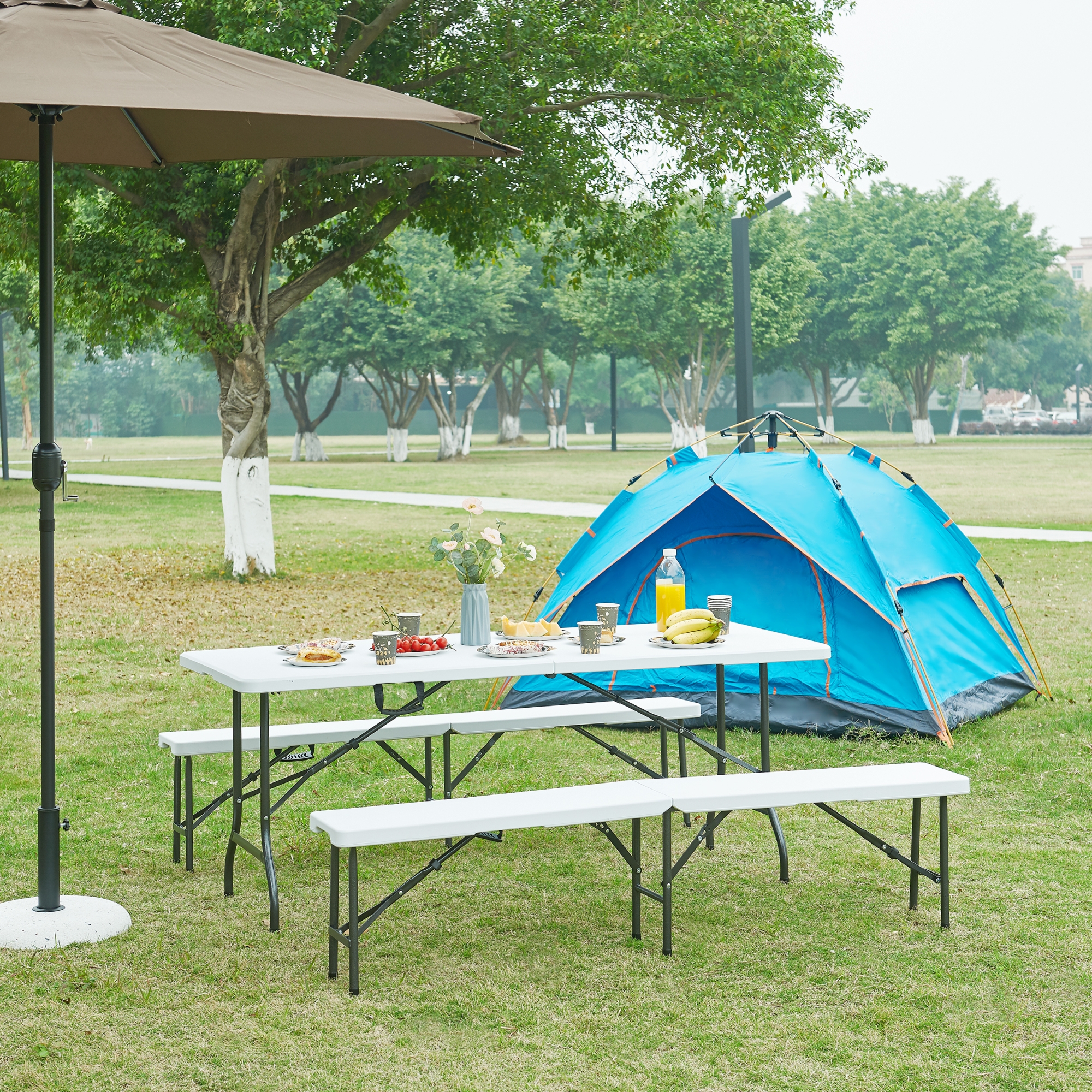 - Masă pliantă pentru exterior, ideală pentru picnic, camping, festivaluri și petreceri