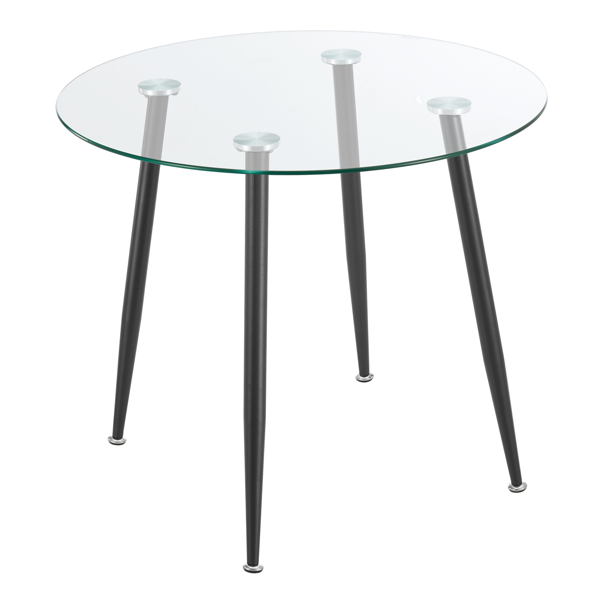 Această masă din sticlă cu design modern este alegerea ideală pentru cei care își doresc un spațiu luminos, elegant și ușor de amenajat. Cu blat rotund din sticlă securizată și picioare metalice negre, modelul Humppila se integrează armonios în decoruri contemporane, minimaliste sau industriale.