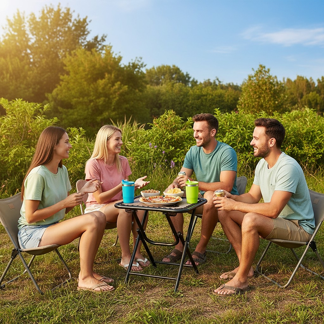 Mod de utilizare: desface masa pe o suprafață stabilă, fixează cadrul și folosește-o pentru băuturi, gustări sau obiecte utile în timpul activităților outdoor. După utilizare, se pliază rapid pentru transport facil.