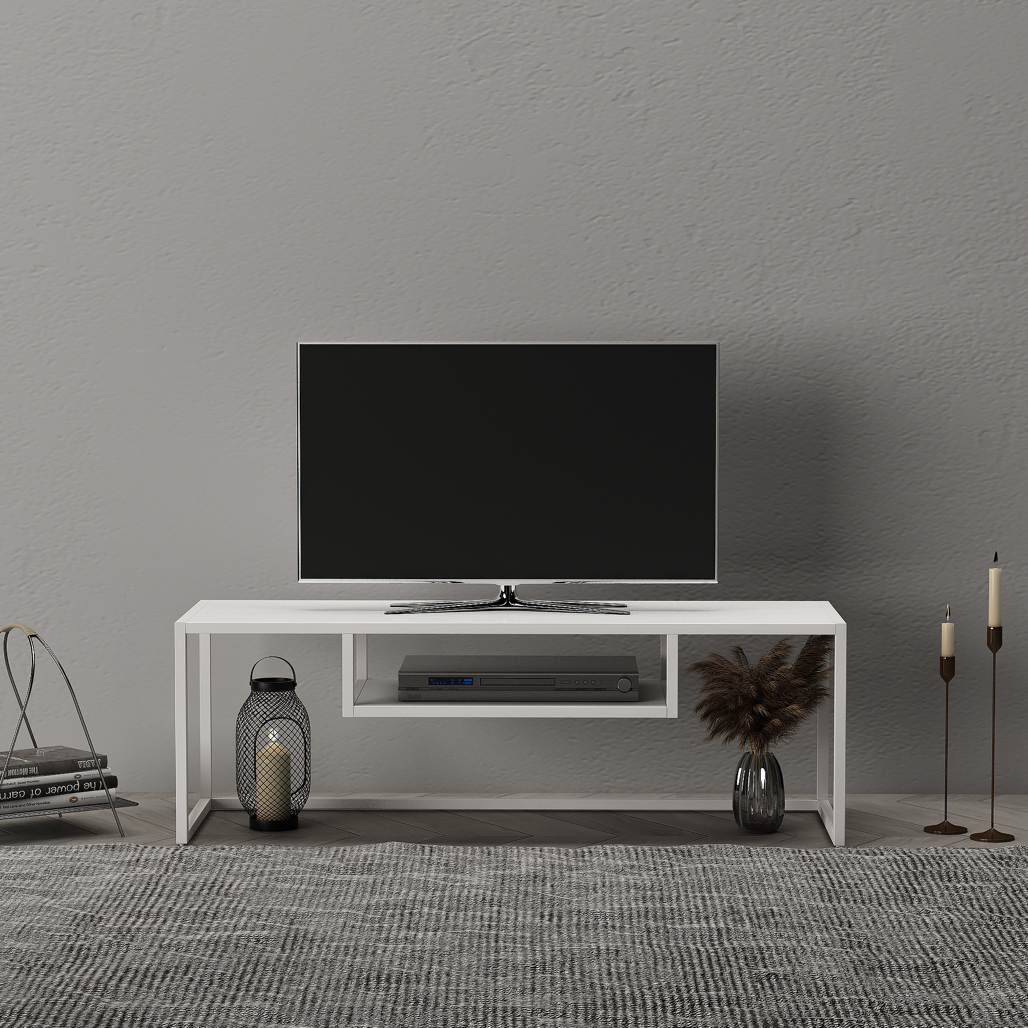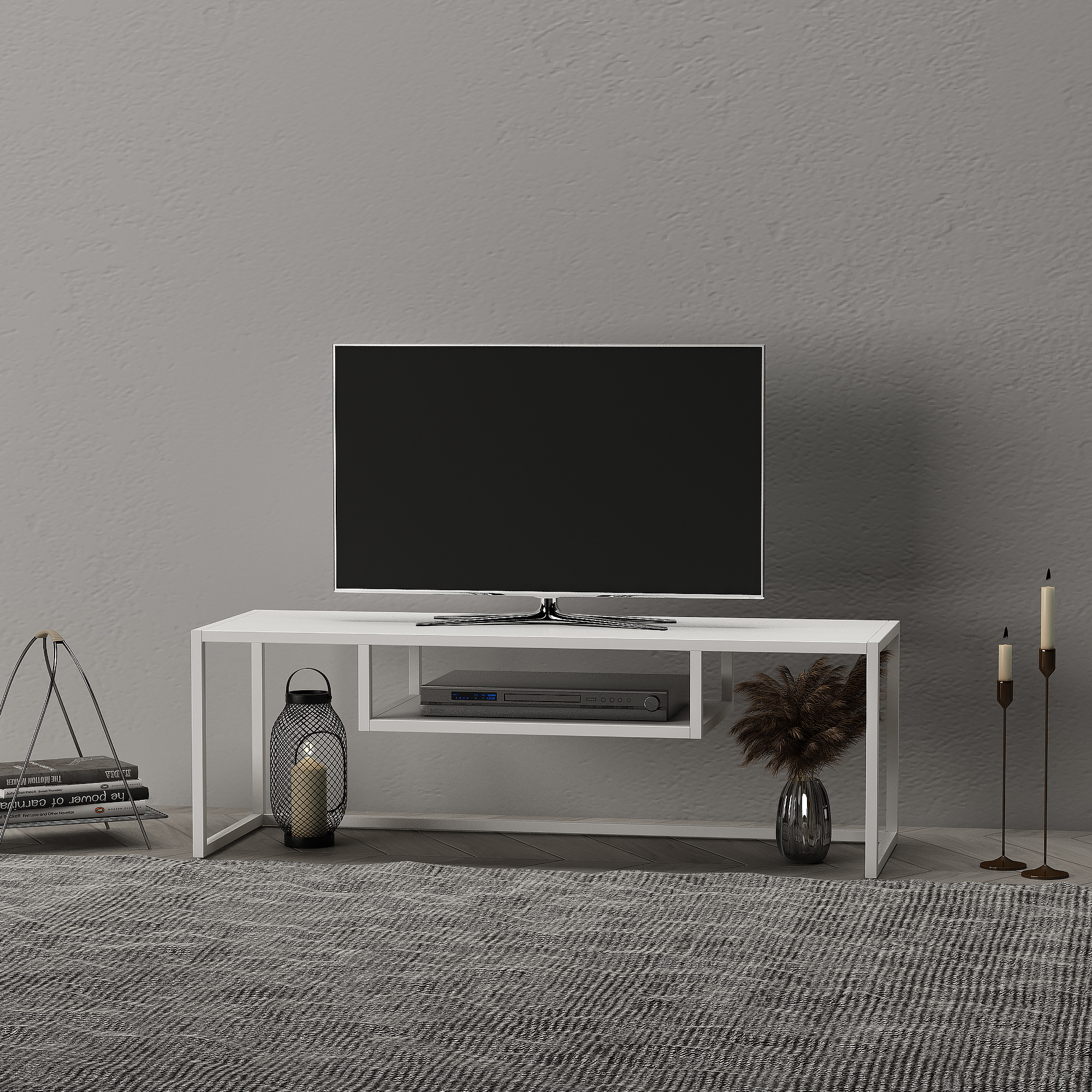 Cu un design minimalist și o finisare albă versatilă, această masă TV albă se integrează ușor în decoruri moderne, scandinave sau contemporane. Structura metalică asigură stabilitate bună, iar suprafața este rezistentă la zgârieturi și ușor de curățat, pentru utilizare confortabilă zi de zi.
