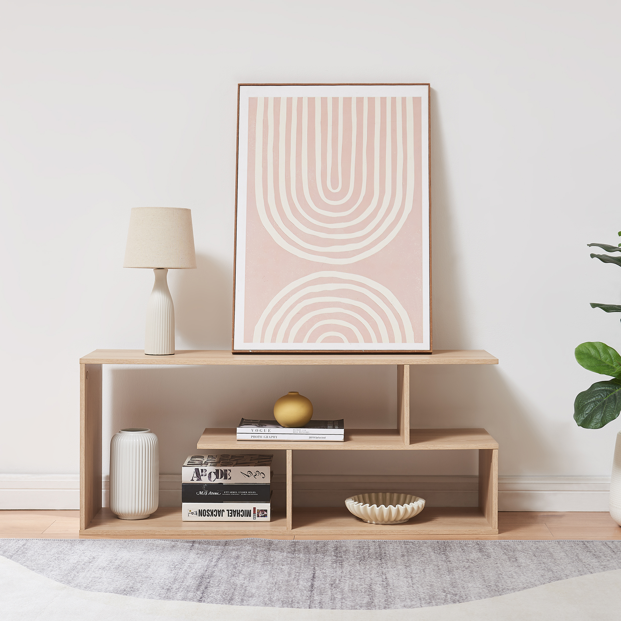 Masă TV modernă 100 cm cu rafturi deschise, finisaj stejar