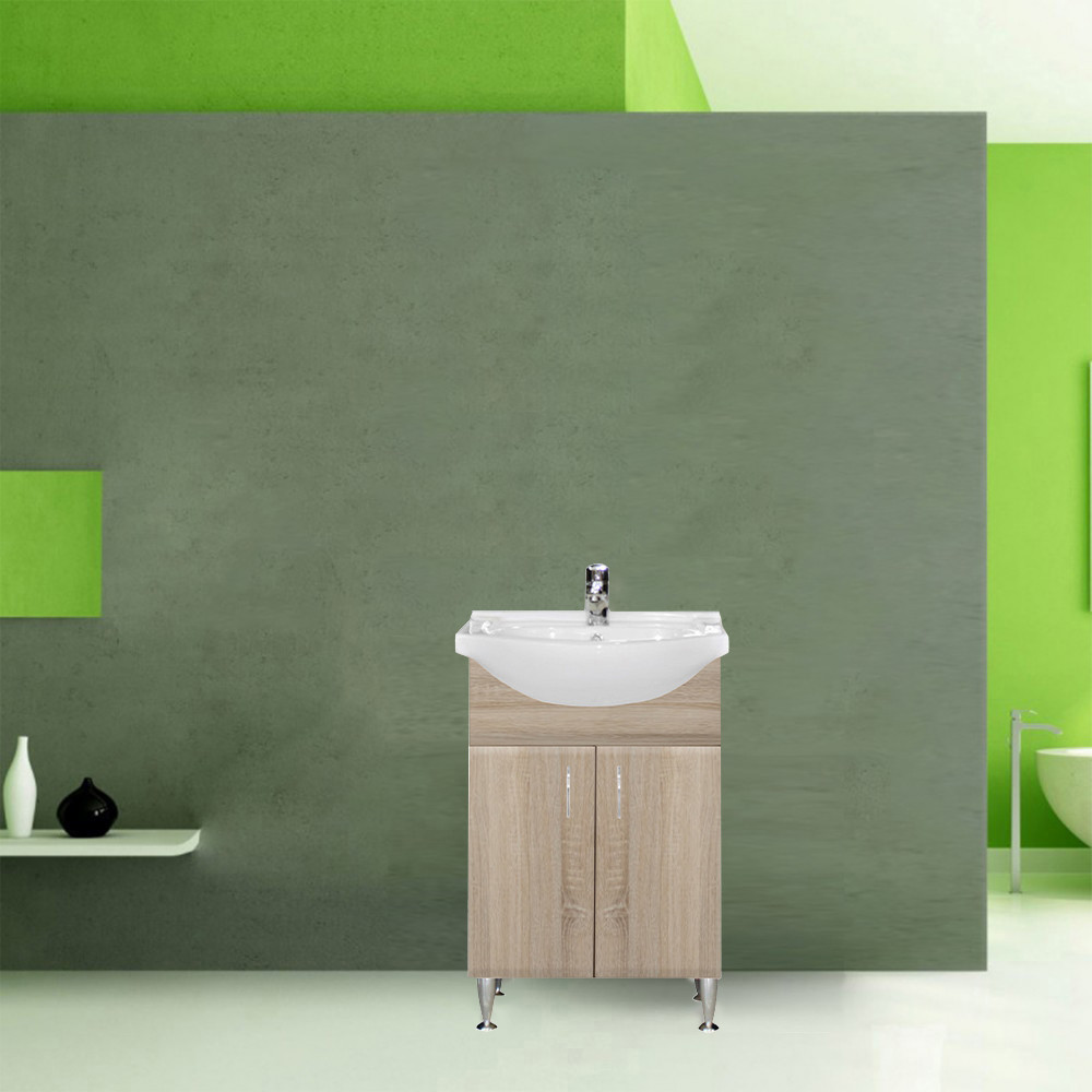Mască chiuvetă baie Leziter Bianca Plus 55 cu lavoar ceramic, stejar Sonoma