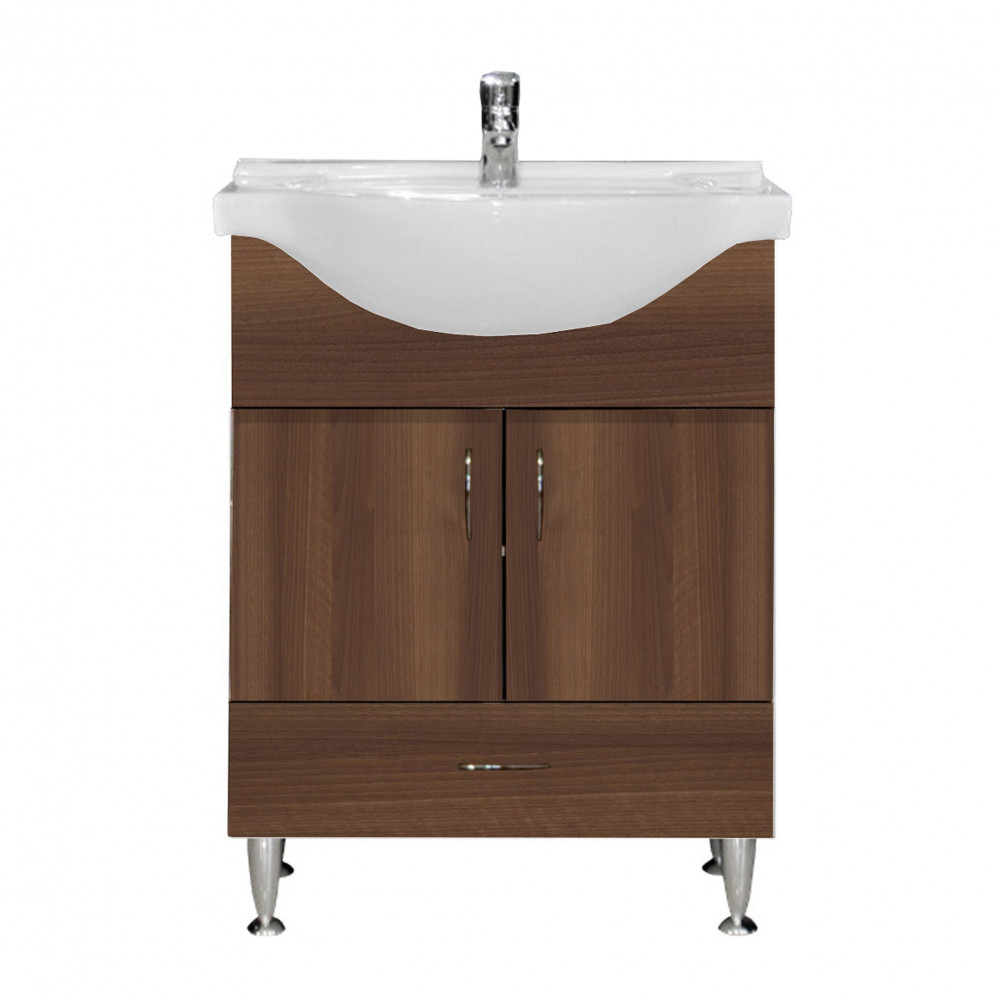 Masca chiuvetă baie Leziter Bianca Plus 65 cu lavoar ceramic, Aida nuc