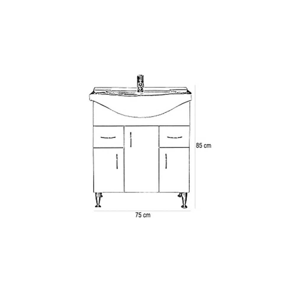 Mască de chiuvetă baie Leziter Bianca Plus 75 (Aida nuc) este o alegere practică și elegantă pentru o baie ordonată. Setul include lavoar ceramic 75x48 cm și un corp cu spații de depozitare (dulap + sertare), ideal pentru organizarea produselor de igienă și a accesoriilor de zi cu zi.