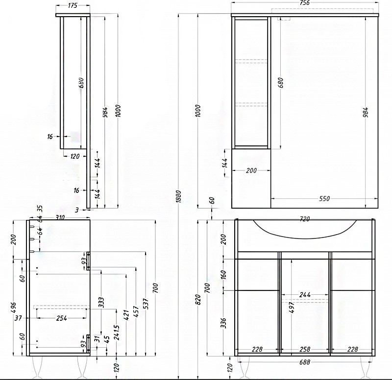 - Dimensiuni corp fără chiuvetă: 80x72x33 cm