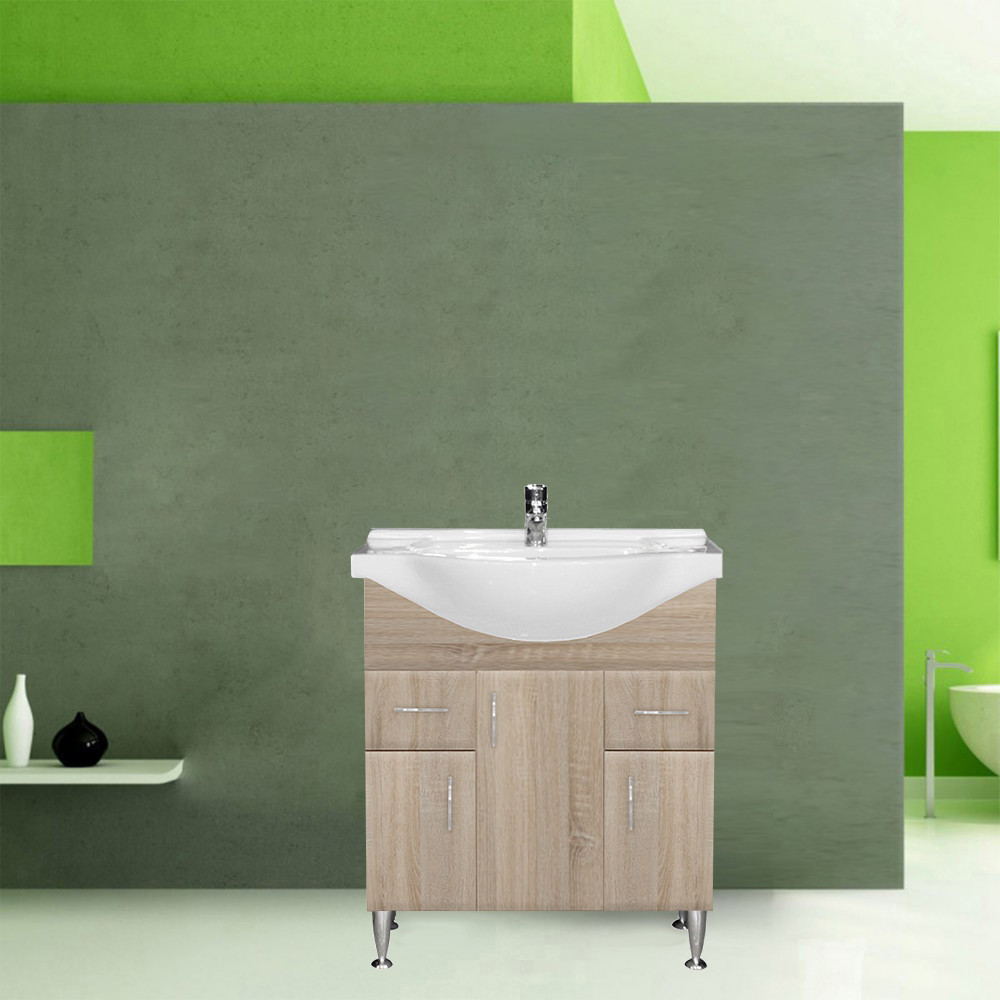 Mască chiuvetă baie Leziter Bianca Plus 75 cu lavoar ceramic, stejar Sonoma