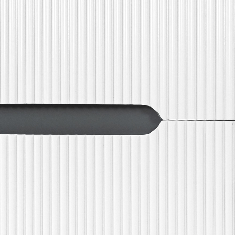 Utilizare & montaj: masca se montează pe perete, deasupra instalației sanitare. Sertarul superior are decupaj în formă de U pentru sifon, astfel încât spațiul rămâne practic fără compromisuri majore. Lavoarul este compatibil cu robinete standard de 35 mm. (Robinetul nu este inclus.)