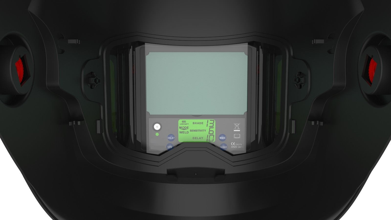 Un set de senzori detecteaza intentitatea luminoasa inregistrata la activarea arcului si modifica imediat opacitatea ecranului la nivelul adecvat pentru cantitatea de radiatii emisa.