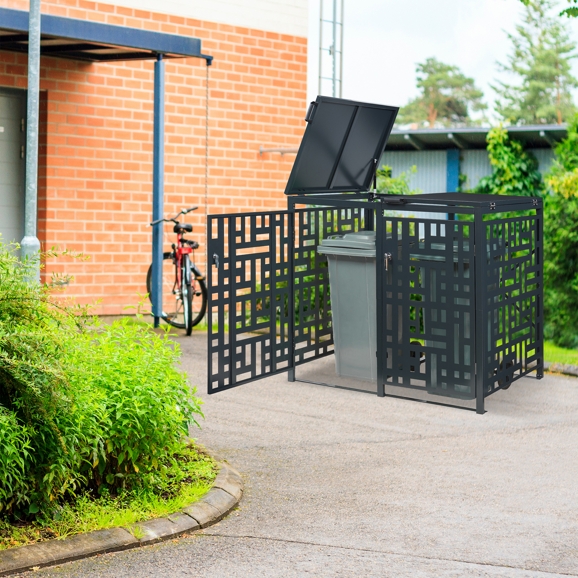 Construita din otel galvanizat, aceasta cutie pentru pubele este rezistenta la intemperii si potrivita pentru utilizare pe termen lung. Cele doua usi frontale sunt prevazute cu sistem de inchidere si manere practice, astfel incat accesul la pubele sa fie simplu, sigur si comod in fiecare zi.