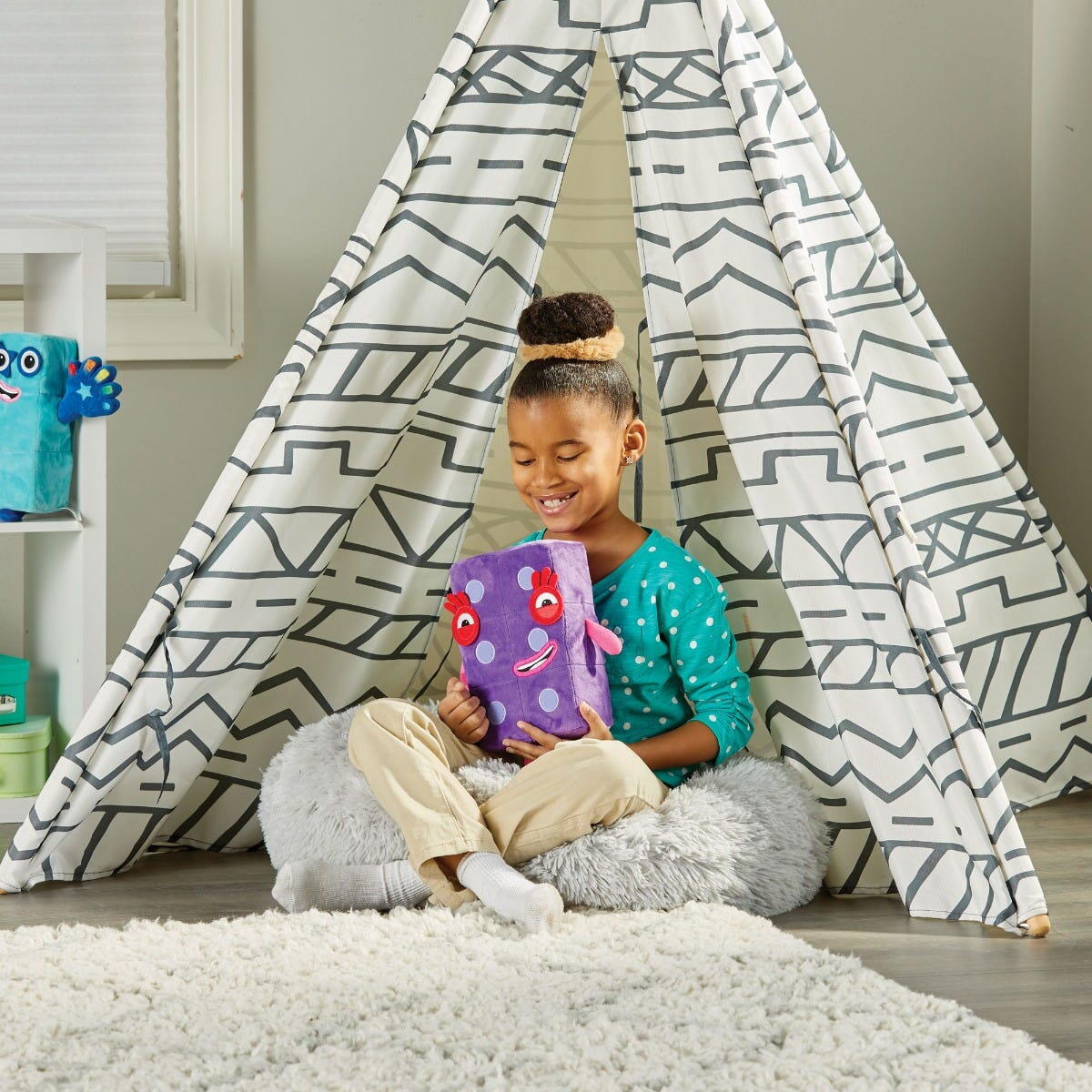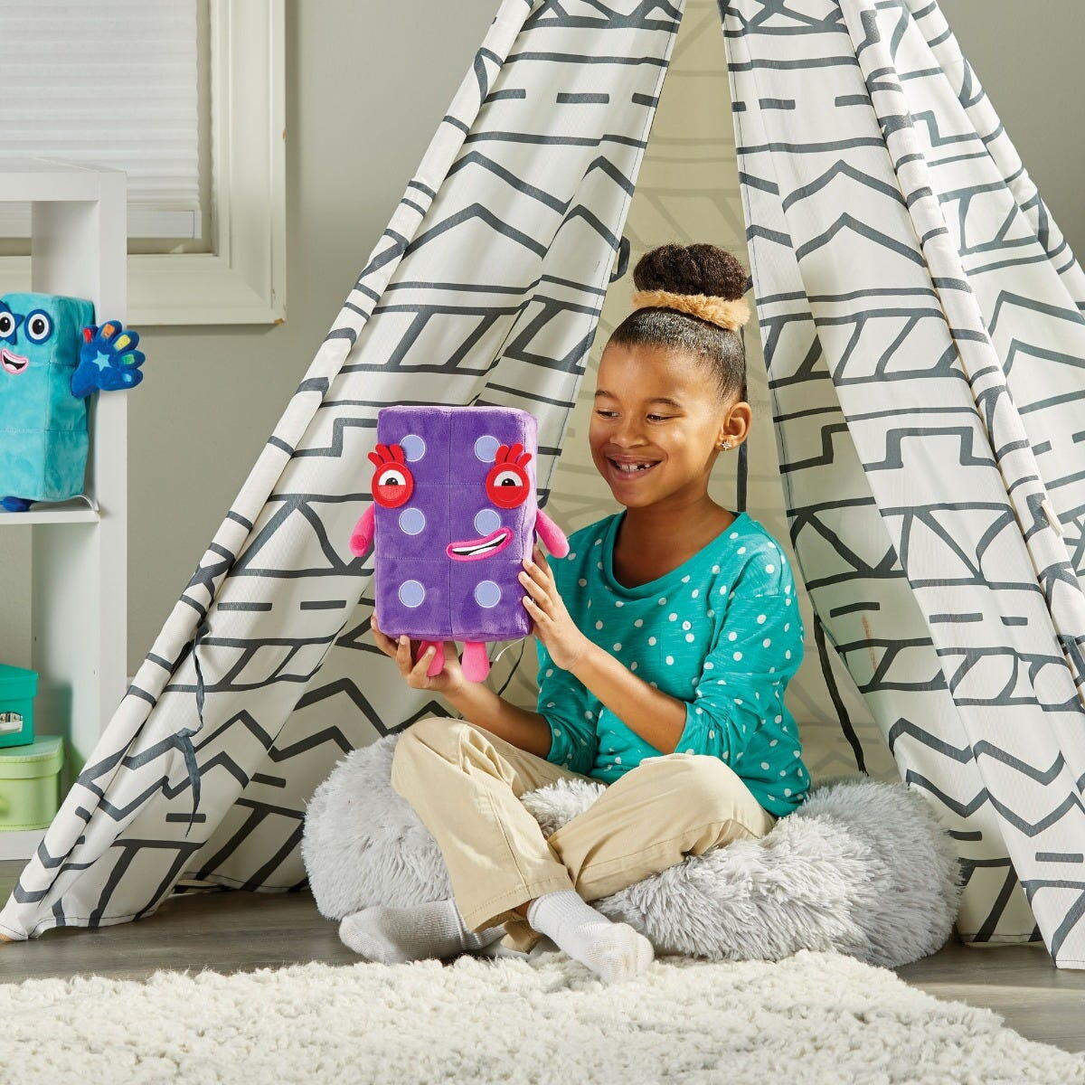 Datorita umpluturii din spuma de calitate, mascota isi pastreaza bine forma in timp, iar bratele si picioarele sunt fixate sigur pentru a fi usor de apucat de manutele mici. In plus, sistemul de prindere cu velcro permite conectarea cu alte personaje Numberblocks, pentru o experienta de joaca si mai distractiva.