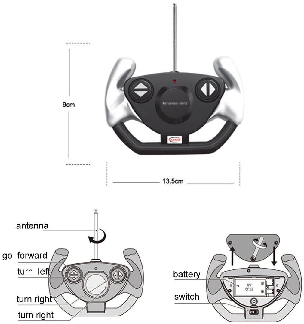 Masinuta cu telecomanda se deplaseaza inainte, inapoi, la stanga si la dreapta, avand o viteza de pana la aproximativ 10 km/h. Este prevazuta cu faruri si stopuri functionale, anvelope din cauciuc si reglaj al directiei pe sasiu, pentru o experienta de joaca mai realista si mai captivanta.